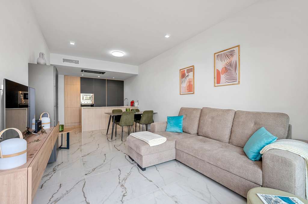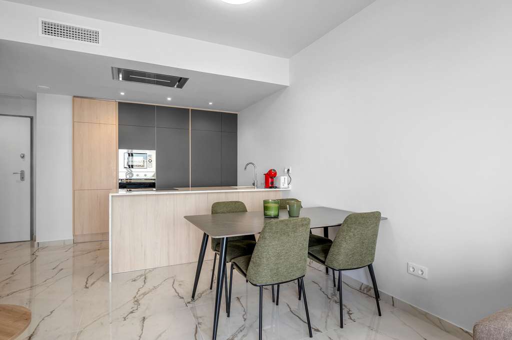 En la codiciada zona de Los Altos, encontrará este elegante ático amueblado, ubicado en la flamante residencia Amanecer X. Con su azotea privada y su soleado balcón, es el lugar perfecto para disfrutar del estilo de vida mediterráneo. La propiedad ofrece 2 dormitorios y 2 baños, distribuidos en casi 71 m² de espacio habitable de diseño elegante. Un luminoso salón de planta abierta conecta a la perfección la moderna cocina con el balcón de 21 m², ideal para tomar el café por la mañana o cenar al aire libre. Además, el amplio solárium de 80 m² ofrece amplio espacio para tomar el sol, recibir invitados o simplemente relajarse en la intimidad. Con dos pérgolas y paneles laterales, disfrutará de la combinación perfecta de sol y sombra en cualquier época del año. El apartamento se entrega amueblado, con muebles de buen gusto y prácticos extras, para que pueda entrar a vivir de inmediato. => Nota: La cocina exterior y los muebles de terraza que se muestran no están incluidos en el precio de venta. Se pueden adquirir por separado como extras opcionales. Como residente de Amanecer X, también se beneficiará de instalaciones comunes de primera clase, como piscina, gimnasio y sauna, diseñadas para que su estancia sea relajante y agradable. Con una ubicación privilegiada cerca de playas, tiendas y restaurantes, esta propiedad combina comodidad y un estilo de vida moderno en la Costa Blanca.