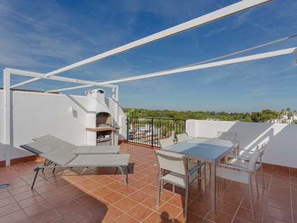 Ático en venta en Orihuela Costa, situado en el prestigioso barrio de Villamartín, en el corazón de la Costa Blanca Sur.Ubicado dentro de una urbanización privada con piscina comunitaria y zonas ajardinadas, esta propiedad ofrece un entornotranquilo y cuidado, ideal para disfrutar del estilo de vida mediterráneo.La vivienda dispone de 2 dormitorios y 2 baños, un luminoso salón con acceso directo a un balcón de 15 m², y un espectacular solárium privado de 50 m². Desde la terraza en la azotea se disfrutan vistas abiertas a la piscina de la residencia, al campo de golf de Villamartín y un ligero vistazo al mar en el horizonte.Su ubicación es especialmente atractiva: a solo 5 minutos del golf de Villamartín, a unos 8 minutos de las playas de Orihuela Costa como La Zenia, Playa Flamenca o Cabo Roig, y a menos de 3 minutos en coche de supermercados, restaurantes, farmacias y todos los servicios esenciales.El centro comercial La Zenia Boulevard se encuentra a 10 minutos, el aeropuerto de Alicante a unos 45 minutos y el de Murcia-Corvera a aproximadamente 40 minutos. Una zona estratégica tanto para vivienda habitual, segunda residencia como para inversión inmobiliaria.Este ático en Villamartín combina elegancia, amplios espacios exteriores y una ubicación privilegiada, dentro de una de las zonas más demandadas de Orihuela Costa y de toda la Costa Blanca.