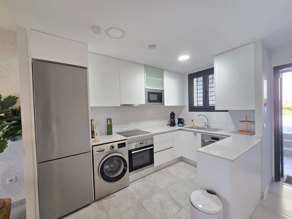 La vivienda cuenta con 2 dormitorios y 2 modernos cuartos de baño, uno de ellos en suite. La cocina abierta está totalmente equipada y se integra a la perfección en el luminoso salón, con acceso directo a la amplia terraza. Desde aquí se disfruta de acceso directo al bonito jardín comunitario, con piscina y jacuzzi, ideal para relajarse y disfrutar del clima mediterráneo.