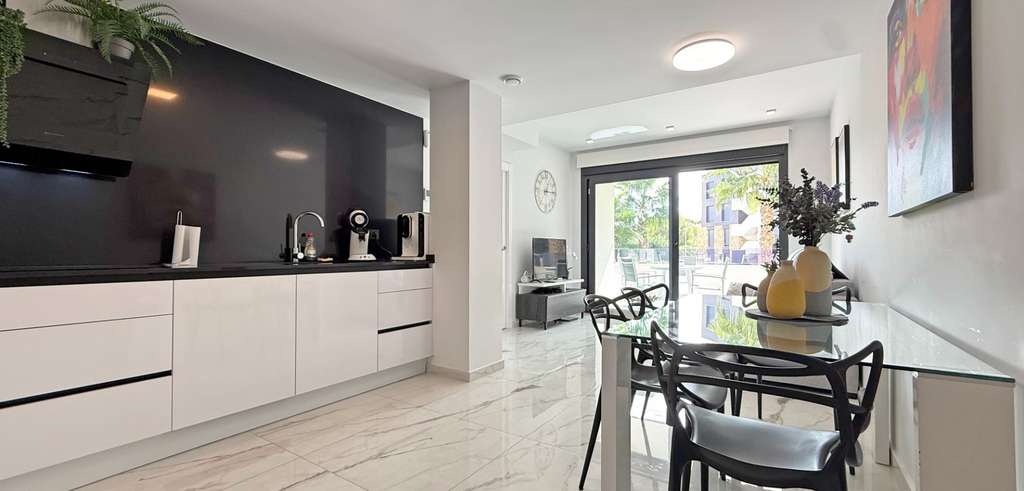 Ubicado en una comunidad cerrada y segura en el corazón de Los Altos, este elegante apartamento en primera planta combina comodidad, luz natural y conveniencia. La propiedad ofrece 2 amplios dormitorios, 2 baños modernos y un salón diáfano y luminoso que se abre a un gran balcón orientado al sur, donde se puede disfrutar del sol durante todo el día.