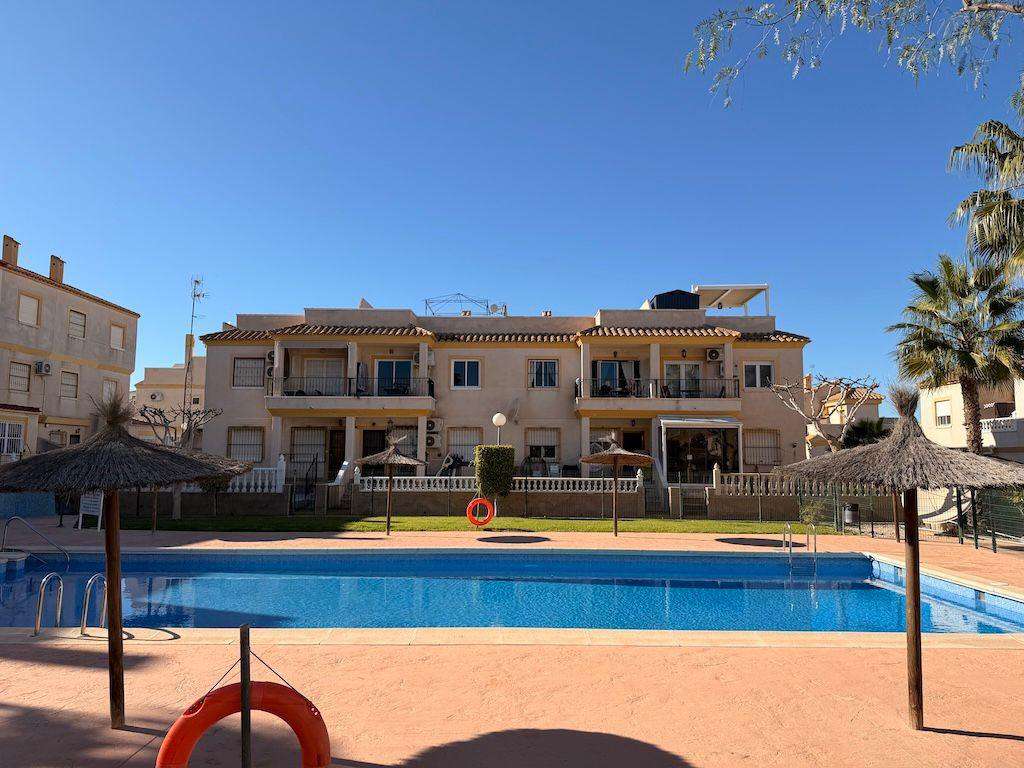 Villamartin, Residencial St James Hills, Bungalow en planta baja frente a jardin comunitario de 50 m2 con una parcela de unos 20 m2, vivienda con 2 dormitorios, baño, cocina y salón comedor, la vivienda se vende amueblada con aire acondicionado cuenta con su propio parking y una amplia piscina comunitaria.