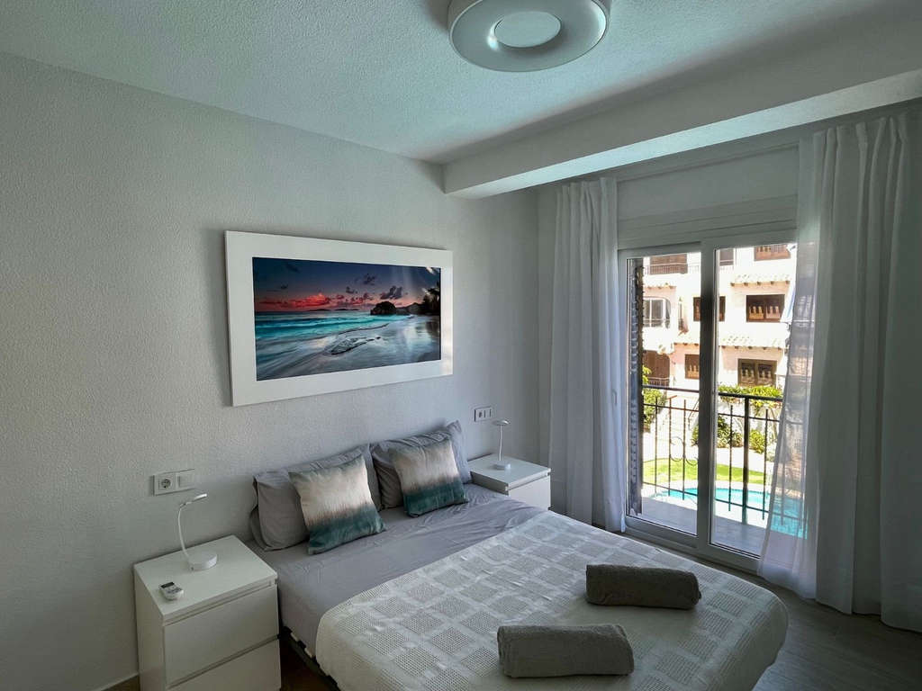 Apartamento recientemente renovado, muy bonito y confortable, situado en una primera planta con orientación sureste. Aire acondicionado en todas las estancias, piscina comunitaria y terraza cerrada con cortinas de cristal. A 800 m de la playa.