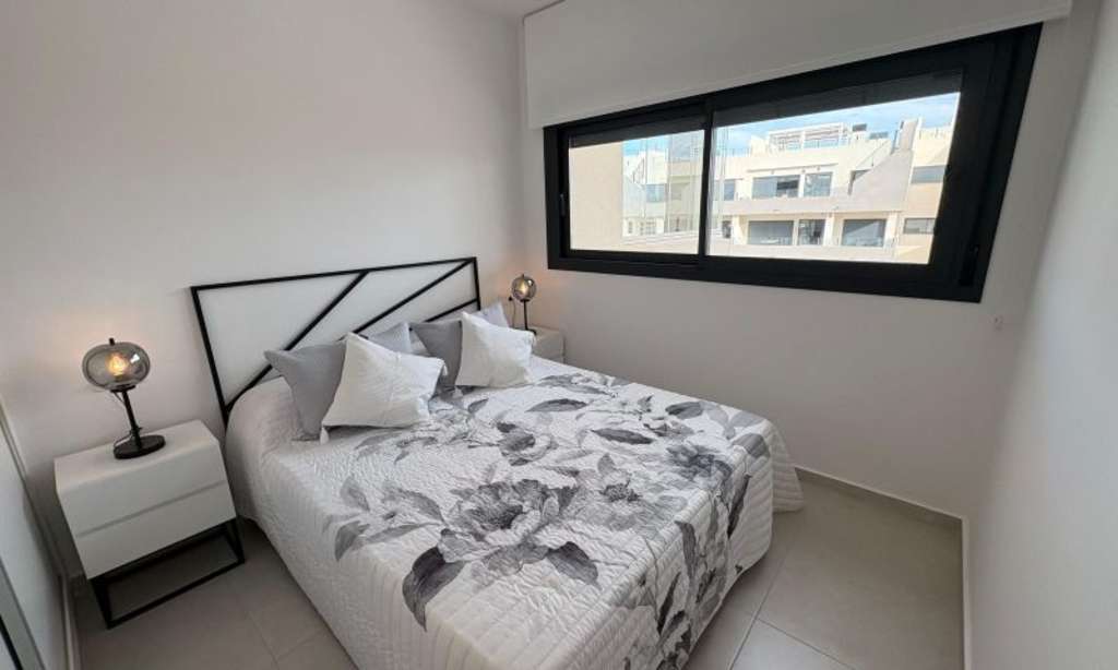 Descubre esta espectacular vivienda de 2dormitorios y 2 baños, ubicada en un elegante residencial privado en Villamartín, Orihuela Costa, una de las zonas más demandadas de la Costa Blanca.La propiedad, completamente a estrenar, destaca por su diseño contemporáneo, líneas limpias y una cuidada decoración moderna que combina funcionalidad y estilo. La vivienda ofrece un amplio y luminoso salón-comedor con grandes ventanales que conectan con el exterior, creando una sensación de amplitud y confort durante todo el año.La cocina, integrada en el espacio principal, presenta un diseño actual y práctico, ideal tanto para el día a día como para disfrutar en familia o con amigos.Dispone de dosdormitorios espaciosos, todos con excelente entrada de luz natural, y dos baños completos con acabados modernos y materiales de alta calidad.Ubicada dentro de un residencial privado con amplias zonas verdes y piscina comunitaria, la vivienda ofrece un entorno tranquilo, seguro y perfectamente cuidado, ideal tanto como residencia habitual como para inversión o segunda vivienda.Situada en Villamartín, a pocos minutos de campos de golf, centros comerciales, servicios, restaurantes y las mejores playas de Orihuela Costa.Una oportunidad perfecta para disfrutar del estilo de vida mediterráneo en una vivienda nueva, moderna y lista para entrar a vivir.