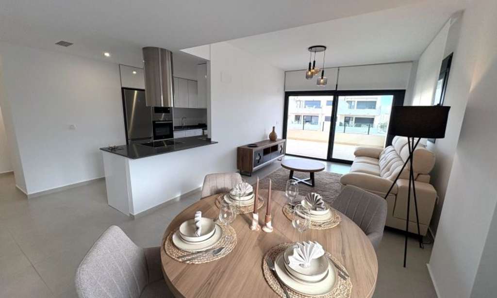 Descubre esta espectacular vivienda de 3 dormitorios, 2 baños y Solárium Privado, ubicada en un elegante residencial privado en Villamartín, Orihuela Costa, una de las zonas más demandadas de la Costa Blanca.La propiedad, completamente a estrenar, destaca por su diseño contemporáneo, líneas limpias y una cuidada decoración moderna que combina funcionalidad y estilo. La vivienda ofrece un amplio y luminoso salón-comedor con grandes ventanales que conectan con el exterior, creando una sensación de amplitud y confort durante todo el año.La cocina, integrada en el espacio principal, presenta un diseño actual y práctico, ideal tanto para el día a día como para disfrutar en familia o con amigos.Dispone de tres dormitorios espaciosos, todos con excelente entrada de luz natural, y dos baños completos con acabados modernos y materiales de alta calidad.Ubicada dentro de un residencial privado con amplias zonas verdes y piscina comunitaria, la vivienda ofrece un entorno tranquilo, seguro y perfectamente cuidado, ideal tanto como residencia habitual como para inversión o segunda vivienda.???? Situada en Villamartín, a pocos minutos de campos de golf, centros comerciales, servicios, restaurantes y las mejores playas de Orihuela Costa.Una oportunidad perfecta para disfrutar del estilo de vida mediterráneo en una vivienda nueva, moderna y lista para entrar a vivir.LA VIVIENDA SE VENDE SIN AMUEBLAR.