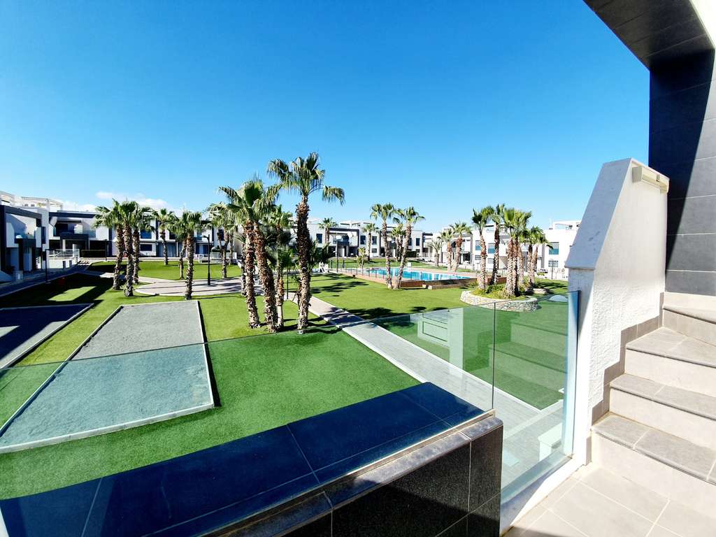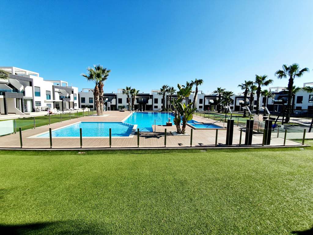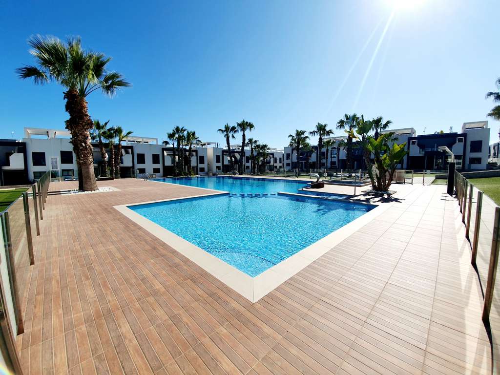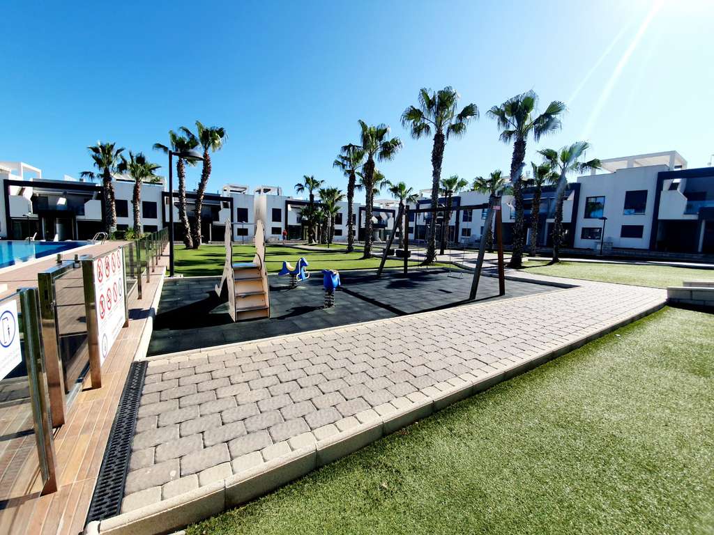 Bungalow en planta alta con solarium privado en un residencial con piscina, zonas verdes y parque infantil.