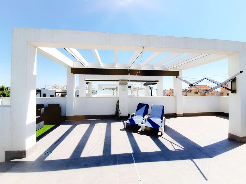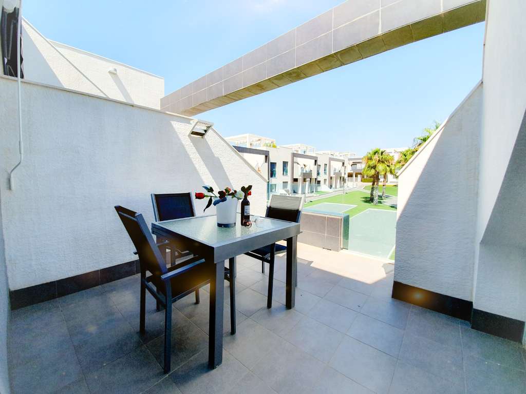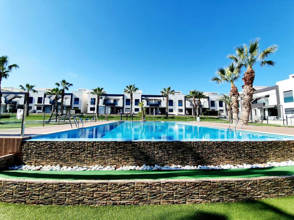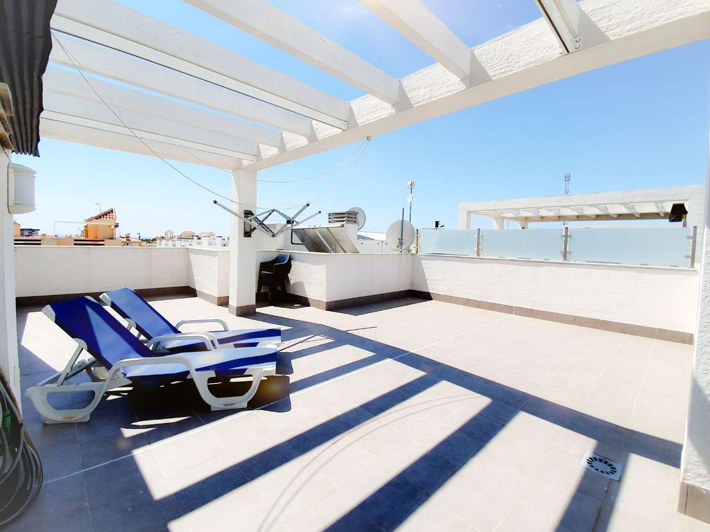 Bungalow en planta alta con solarium privado en un residencial con piscina, zonas verdes y parque infantil.