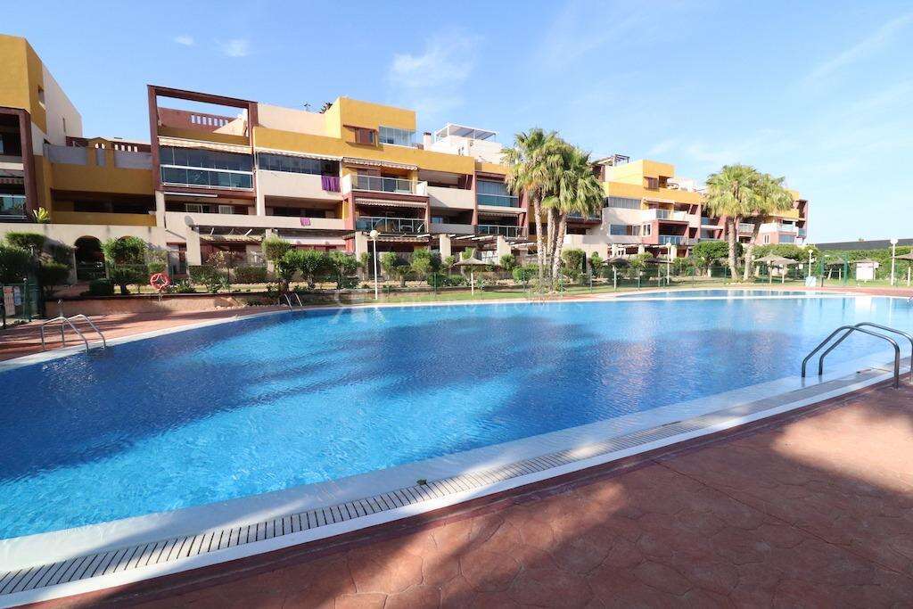 Residencial El Bosque en Playa Flamenca Atico orientación Sur con vistas al mar y a la piscina comunitaria, vivienda de 68 m2 con 2 dormitorios uno de ellos con acceso directo a la terraza, baño con acceso directo desde ambos dormitorios, cocina americana, amplio salón comedor y 2 amplias terrazas una de 35 m2 y otra de 16 cuenta con su propio solarium independiente de 68 m2, la vivienda se vende amueblada y con aire acondicionado, cuenta con su propia plaza de aparcamiento, el residencial cuenta con amplias zonas verdes y una gran piscina comunitaria.~