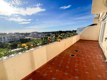 El salón-comedor, amplio y acogedor, se integra con una cocina americana de estilo contemporáneo, creando un espacio abierto ideal para vivir y compartir. Desde aquí se accede a la terraza principal, un magnífico espacio exterior de grandes dimensiones, con vistas despejadas hacia el centro comercial y el entorno urbano de Punta Prima.