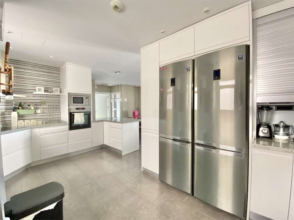 Ático con 4 dormitorios y 3 baños. Este precioso apartamento ofrece mucho espacio tanto interior como exterior. El amplio salón ofrece espacio suficiente para sala de estar y comedor. La cocina es amplia y cuenta con amplios armarios y mesas. Se incluyen muebles y electrodomésticos. Hay varias camas nuevas en el apartamento. Amplio balcón orientado al sur con acceso desde el salón y el dormitorio. Amplia azotea con ducha exterior y trastero. La azotea ofrece una hermosa vista del pueblo y el mar, donde podrá disfrutar del sol la mayor parte del día. El complejo cuenta con piscina exterior, piscina cubierta y gimnasio.