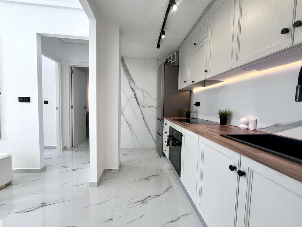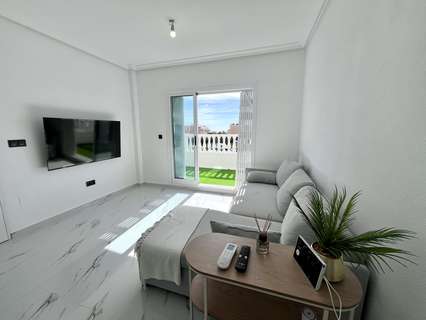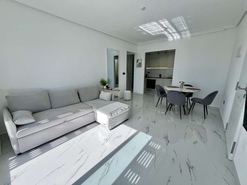 Este ático de 1 dormitorio y 1 baño, bellamente renovado, goza de una ubicación ideal en la codiciada zona de Playa Flamenca, dentro de la atractiva urbanización Zenia Star 1. Con una distribución luminosa y abierta, la propiedad ofrece un espacio moderno y elegante, diseñado para la comodidad y el bienestar. El apartamento disfruta de una soleada orientación sur, lo que permite disfrutar de abundante luz natural durante todo el día, y ofrece maravillosas vistas al mar desde el salón principal y la terraza. La vivienda ha sido completamente reformada con materiales de alta calidad, combinando acabados contemporáneos con un diseño funcional. La cocina y el salón de planta abierta crean un ambiente acogedor, ideal para relajarse o recibir invitados. Un lavadero independiente añade funcionalidad adicional, mientras que un trastero privado ofrece espacio adicional para sus pertenencias. Los residentes de Zenia Star 1 disfrutan de acceso a una piscina comunitaria y un jardín bien cuidados, perfectos para refrescarse o disfrutar del cálido clima mediterráneo. La ubicación es inmejorable, a poca distancia a pie de todos los servicios locales, como supermercados, cafeterías, restaurantes y el popular Centro Comercial Playa Flamenca. El famoso centro comercial La Zenia Boulevard está a un corto paseo y ofrece una amplia gama de tiendas, restaurantes y entretenimiento. Para los amantes de la playa, las hermosas playas de arena del Mediterráneo están a solo 5 minutos en coche, incluyendo las galardonadas playas de Playa Flamenca y La Zenia. Las familias también apreciarán la comodidad de tener la escuela de español local a solo 50 metros de la propiedad.
