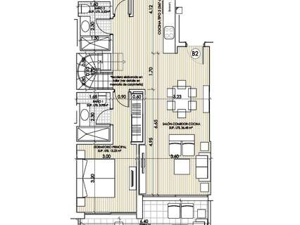 Cocina americana y salón, 2 amplios dormitorios con armarios empotrados, 2 baños, lavadero.