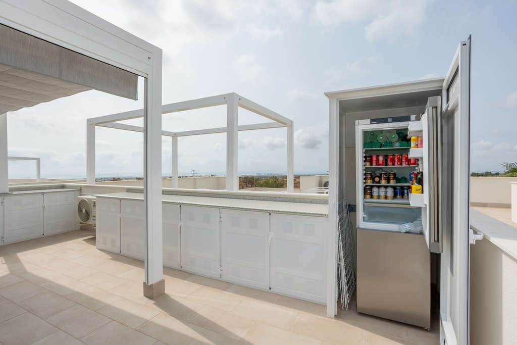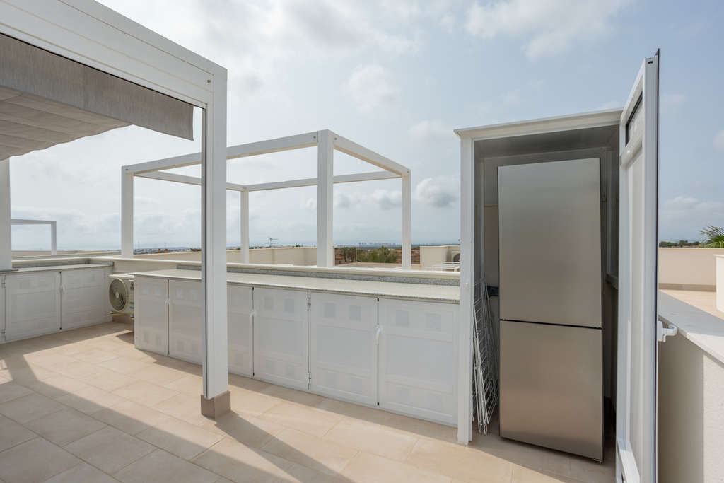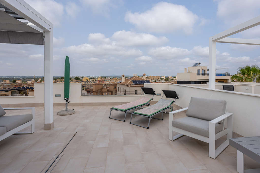 **Excepcional ático de 2023 con facturas de luz cero y vistas impresionantes** Descubra el lujo moderno en este impresionante ático, construido en 2023, que cuenta con 2 amplios dormitorios y 2 baños de elegante diseño. La cocina y el salón de planta abierta crean una atmósfera fluida, perfecta tanto para relajarse como para disfrutar del entretenimiento. Salga al amplio balcón, donde podrá saborear su café de la mañana o disfrutar de las puestas de sol al atardecer, mientras contempla el impresionante entorno. El impresionante solárium de 87 m² está equipado con paneles solares, lo que garantiza que su factura de luz sea de 0 €, adoptando un estilo de vida sostenible sin sacrificar el estilo. Otras características destacadas incluyen una plaza de garaje segura y un trastero privado para su comodidad. Disfrute del acceso a una piscina comunitaria, ideal para refrescarse en los días cálidos. La ubicación de la propiedad garantiza que las vistas sean impecables. Con vistas de 360 grados al océano y a las montañas, este ático ofrece un estilo de vida inigualable. Además, el mobiliario es negociable, lo que le permite personalizar su nuevo hogar a su gusto. ¡No pierda la oportunidad de adquirir esta excepcional propiedad! ¡No espere! ¡Contáctenos hoy mismo para programar una visita!
