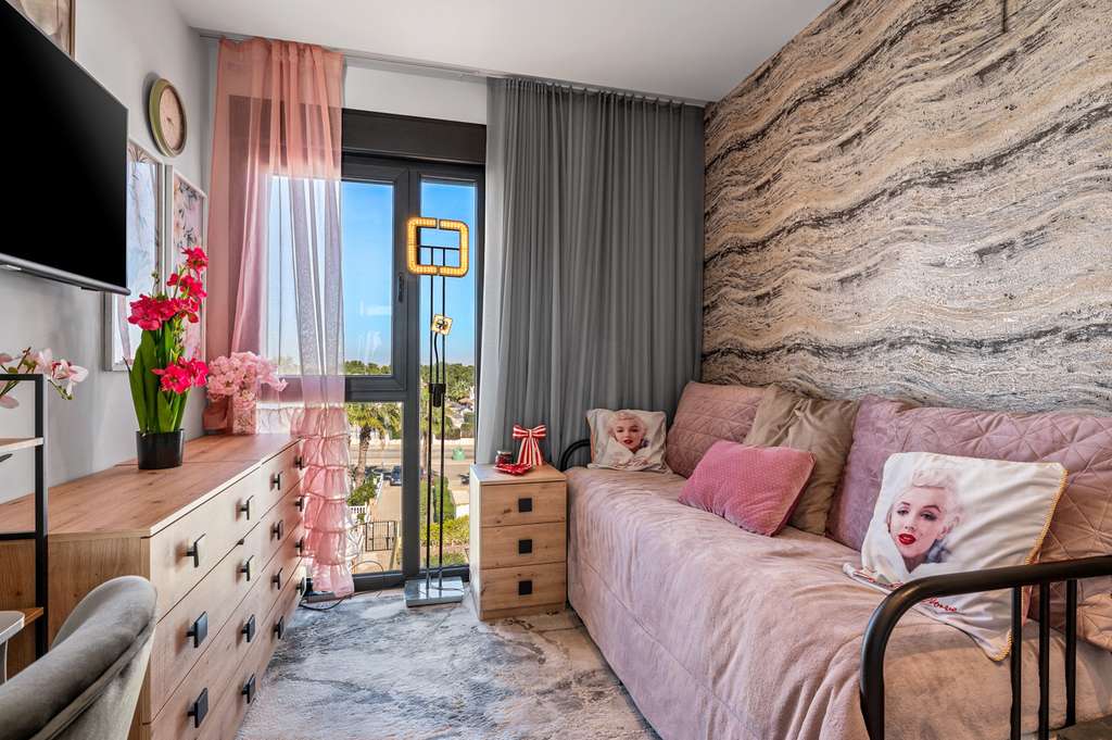 La propiedad está a solo unos minutos a pie de todos los servicios esenciales, incluidos restaurantes, tiendas y supermercados. El popular centro comercial La Zenia Boulevard, con una amplia oferta de compras y ocio, se encuentra a un paso. Además, las hermosas playas y campos de golf de la zona están a pocos minutos en coche.
