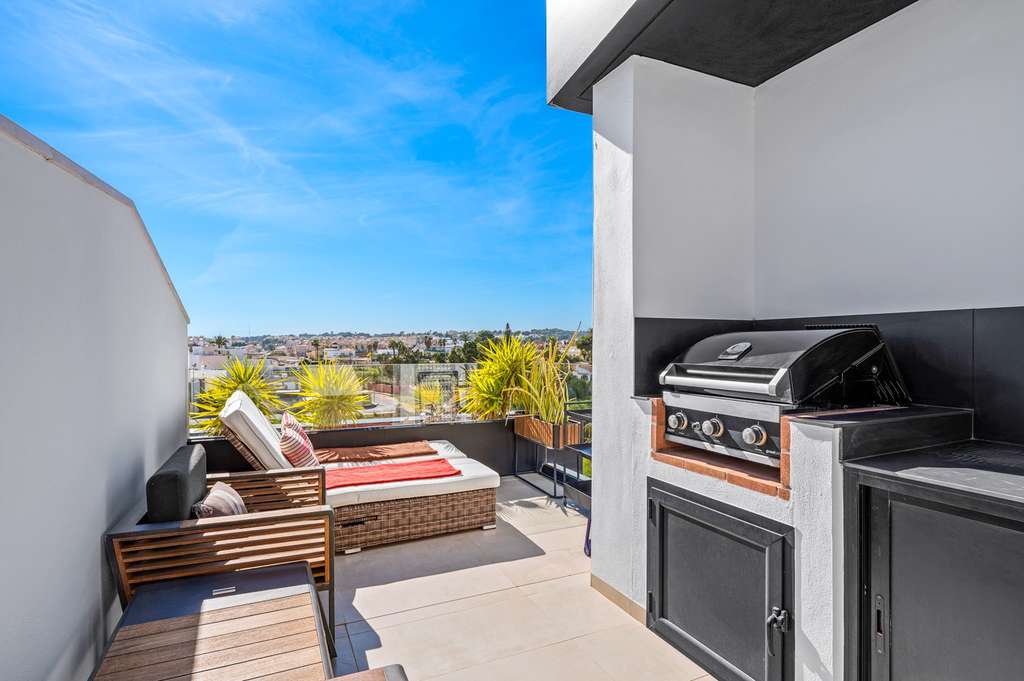 Desde el salón hay una puerta da acceso a una amplia terraza, perfecta para perfecta para disfrutar de comidas al aire libre. En el nivel superior, descubrirá una terraza adicional con cocina al aire libre, barbacoa y mesa de comedor, ideal para disfrutar de una comida en un entorno incomparable mientras se admira la espectacular vista.