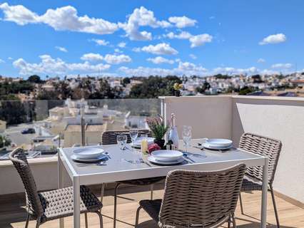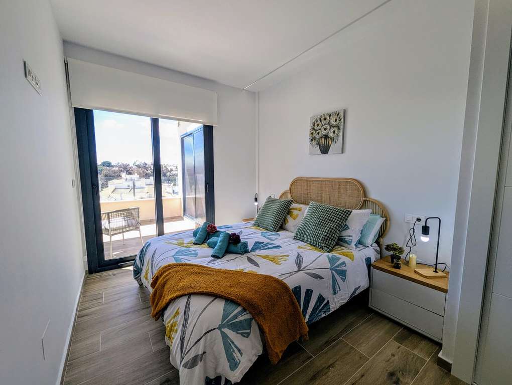 Este moderno ático de 2 dormitorios y 2 baños se encuentra en Villamartín, Alicante, en una ubicación privilegiada a pocos minutos a pie de todos los servicios (restaurantes, bares y tiendas). La fantástica playa de La Zenia y el centro comercial La Zenia Boulevard están a tan solo 10 minutos en coche. Villamartín Plaza y Villamartín Golf se encuentran a menos de 4 minutos. La propiedad consta de un amplio salón, una cocina-comedor de planta abierta, persianas eléctricas, aire acondicionado (frío/calor) en toda la vivienda, un dormitorio principal con armarios empotrados y baño en suite, un segundo dormitorio con armarios empotrados y un segundo baño con ducha. Las puertas del patio dan a una terraza privada (con un pequeño lavadero) para disfrutar del sol durante todo el día, y hay una gran terraza/solárium en la azotea con vistas espectaculares. También incluye una plaza de aparcamiento privada asignada. Hay una encantadora zona verde comunitaria con piscina comunitaria, zona de petanca, parque infantil y un precioso parque comunitario. Estos apartamentos ofrecen una excelente relación calidad-precio y su ubicación es inmejorable, con bares, restaurantes y servicios a pocos pasos. La zona de Villamartín es muy popular entre los turistas y la mayor parte de su población está formada por comunidades de expatriados de Europa Occidental que se han asentado allí en los últimos 10 años, transformando prácticamente el pueblo en una ciudad de aspecto moderno. También hay otros campos de golf cerca y numerosas playas de arena blanca.