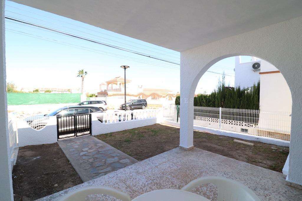 Las Chismosas/ La Florida muy cerca de Playa Flamenca y de Zenia boulevard,Bungalow planta baja en esquina de unos 60 m2 y con un jardin de unos 40 m2con 2 dormitorios, baño, cocina americana y salón comedor, terraza y un amplio patio trasero con salida directa a los jardines comunitarios la vivienda se vende amueblada, la urbanización NO tiene piscina pero si que hay cerca una piscina pública.~