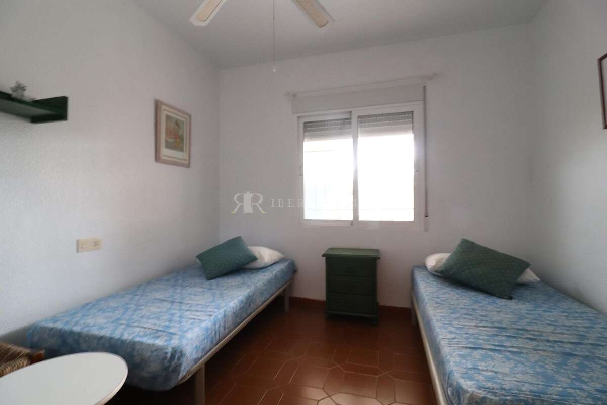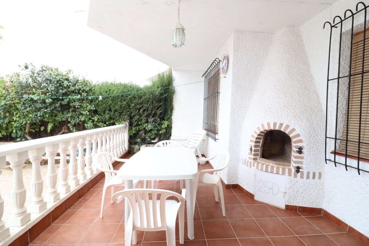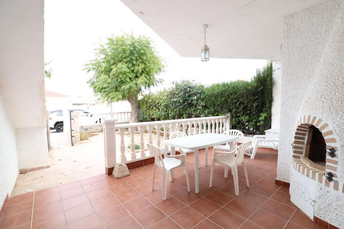La Regia, Bungalow planta baja de unos 68 m2 con una parcela enlosada de unos 30 m2 la vivienda dispone de 2 dormitorios, baño, cocina amplia independiente, salón comedor con chimenea y terraza de unos 15 m2 con trastero y barbacoa, la vivienda se vende amueblada.~