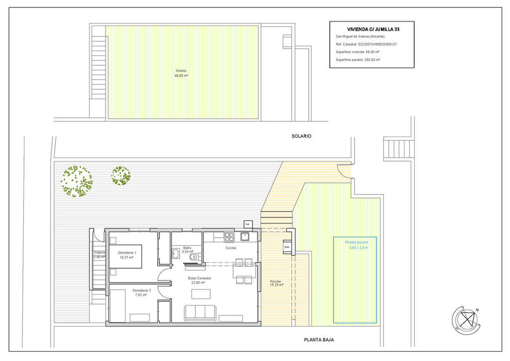 Se vende bungalow en Orihuela (Villamartín). Superficie 58 m2. Precio 199.000 €. 2 habitaciones y un baño.