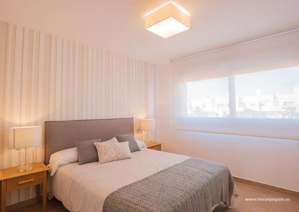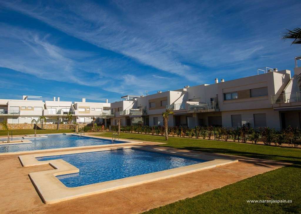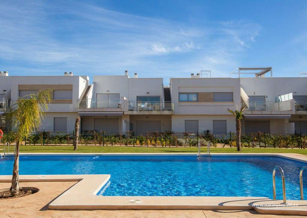 Complejo con instalaciones comunitarias y piscina consta de bungalows de 2 y 3 dormitorios, en planta baja con jardín privado y planta alta con solarium privado, cocina abierta con la zona del salón, armarios empotrados, terraza.