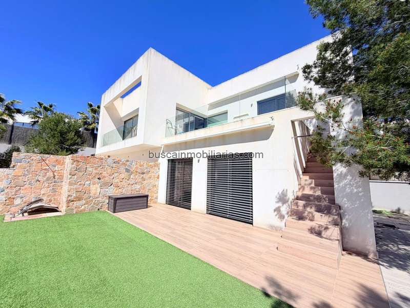 La joya de la corona es su zona exterior. Disfruta de una piscina estilo infinity que parece fundirse con el paisaje, rodeada de un impecable jardín de césped artificial de bajo mantenimiento. La propiedad cuenta con amplias terrazas soleadas, zona de comedor exterior bajo una gran pérgola y muros de piedra natural que aportan un toque rústico y elegante al diseño vanguardista. Además, dispone de una zona deportiva privada con portería, perfecta para el ocio en familia.