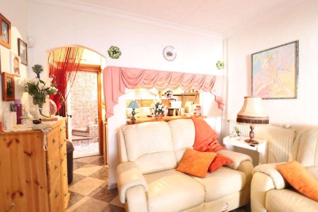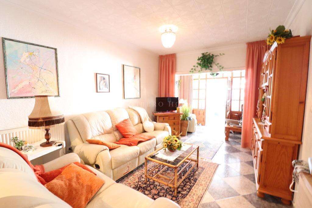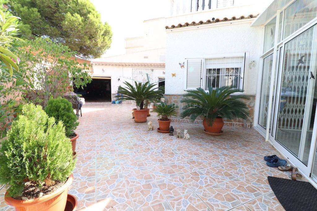 La Zenia, en el lado del mar Chalet adosado y en esquina con una parcela de 252 m2 y una vivienda en 2 plantas de 195 m2, dispone de 5 dormitorios, 3 baños, 2 salones, cocina americana con galeria cerrada, terraza acristalada, garaje cerrado ycuenta con una casa de invitados separada con untrastero, la vivienda se vende semi-amueblada y a tan solo 300 mts de la playa de la zenia.~