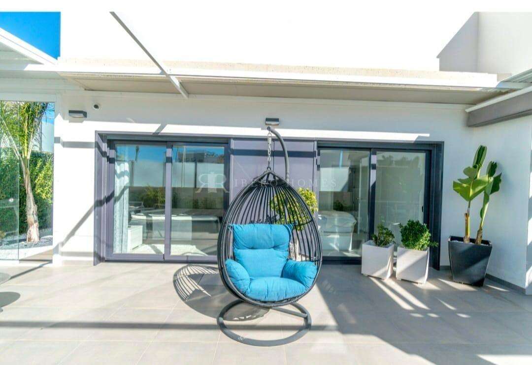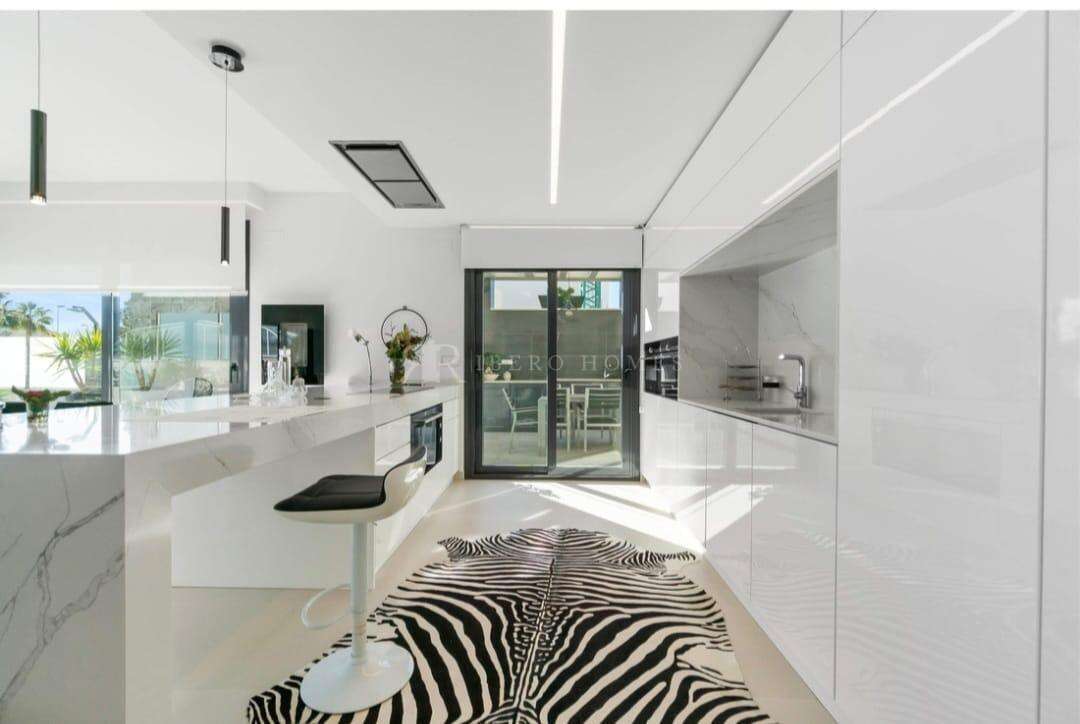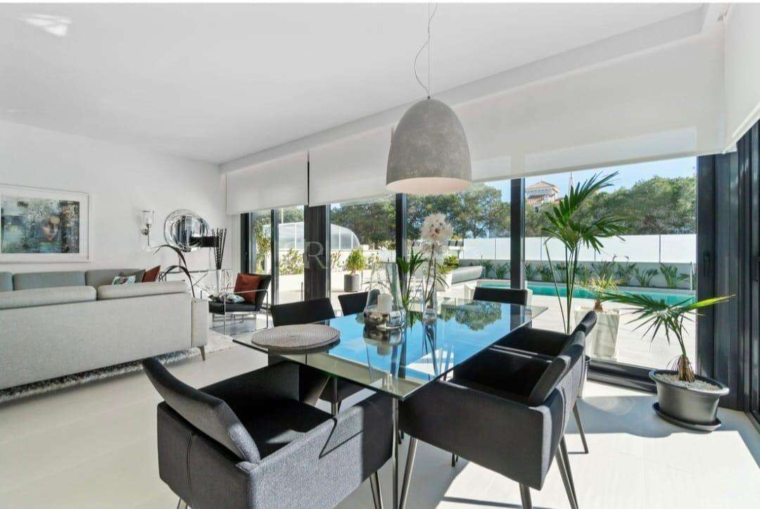 Campoamor, Chalet moderno de lujo con una parcela de 479 m2 y una vivienda de 234 m2 con 3 dormitorios ( 2 de los cuales en la planta baja), 3 baños, amplio salón comedor, cocina con su isla, gran terraza, piscina privada, solarium con zona acristalada y jacuzzi con vistas al mar, zona de barbacoa, se vende amueblada, con plaza de parking en la parcela y esta andando a la playa de aguamarina.~ ~~