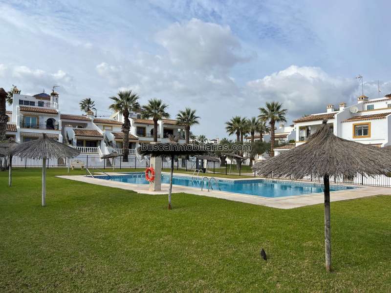 La comunidad ofrece dos piscinas comunitarias bien mantenidas cercanas. La ubicación es excelente: supermercados, bares y restaurantes se encuentran a poca distancia a pie, y para los entusiastas del golf, hay campos de golf de renombre mundial en las inmediaciones. El famoso centro comercial La Zenia, con una amplia gama de tiendas y restaurantes, se encuentra a poca distancia en coche. La playa de La Zenia está a solo 3 kilómetros de distancia.