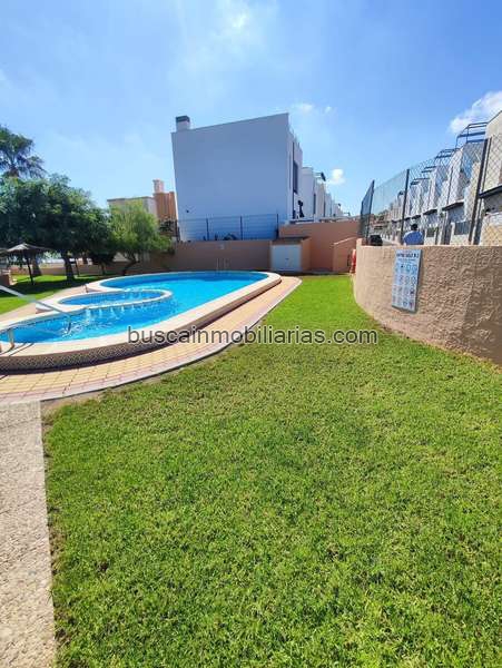 Presentamos este excepcional chalet adosado en Orihuela Costa, situado en la exclusiva zona de PAU 26. Con un precio imbatible de solo 196.950 euros, esta propiedad cuenta con una generosa superficie construida de 96 m2 y útil de 89 m2 distribuidos en tres plantas. En la planta baja se encuentra un acogedor porche que da paso a un amplio salón luminoso junto a una hermosa cocina equipada con acceso directo al patio privado que también alberga un trastero funcional. La segunda planta dispone de tres dormitorios dobles amplios; uno tiene su propia terraza privada ideal para el descanso y relax familiar así como otro baño completo muy bien acondicionado. La tercera planta ofrece un magnífico solárium donde disfrutar del sol durante todo el día gracias a sus vistas despejadas sobre los alrededores. Los residentes podrán acceder asimismo a una gran piscina comunitaria rodeada por césped natural y zonas ajardinadas equipadas con sombrillas tipo hawaiana perfectas para protegerse del calor estival mientras disfrutan del ocio bajo el sol mediterráneo.