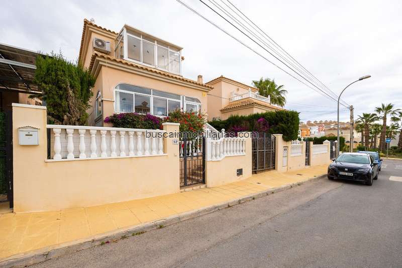 Situado en la codiciada zona de Villacosta, en Villamartin, este bonito chalet independiente de 3 dormitorios y 2 baños es perfecto para quienes buscan sol, golf o una segunda residencia en la costa. Con una orientación sur, la propiedad disfruta de sol durante todo el día en sus espacios exteriores privados, ideales para relajarse o disfrutar en familia. La vivienda ofrece un salón luminoso, cocina independiente y dormitorios amplios, además de dos baños completos para mayor comodidad. En el exterior, cuenta con un jardín de fácil mantenimiento, terrazas soleadas y acceso a una agradable piscina comunitaria. A solo unos minutos en coche de las playas con bandera azul de Orihuela Costa y rodeado de campos de golf de prestigio, como Villamartin, Campoamor y Las Ramblas. También está cerca de tiendas, restaurantes y todos los servicios, lo que lo convierte en una excelente opción tanto como vivienda habitual, casa de vacaciones o inversión con alta rentabilidad. Características destacadas: 3 Dormitorios, 2 Baños Orientación Sur Piscina Comunitaria Jardín Privado y Terrazas Soleadas Cerca de Campos de Golf y Playas Zona Residencial Tranquila con Servicios Cercanos Ideal para Vacaciones o Residencia Permanente ¡No pierda la oportunidad de adquirir esta luminosa y espaciosa villa en una de las zonas más deseadas de la Costa Blanca!