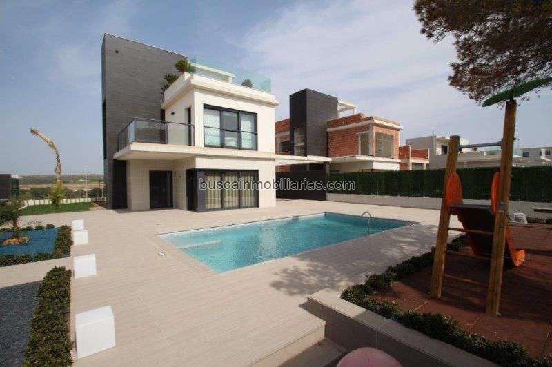 Villa independiente de lujo construida con las mejores calidades y diseño vanguardista. Espacios abiertos, colores neutros y optimización de la luz natural son las claves de estas modernas viviendas situadas en la mejor área de Orihuela Costa (Dehesa de Campoamor).