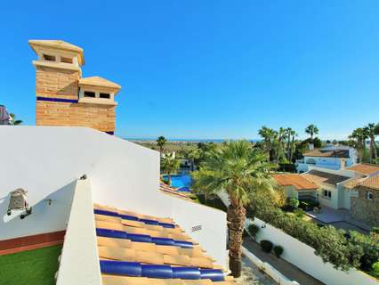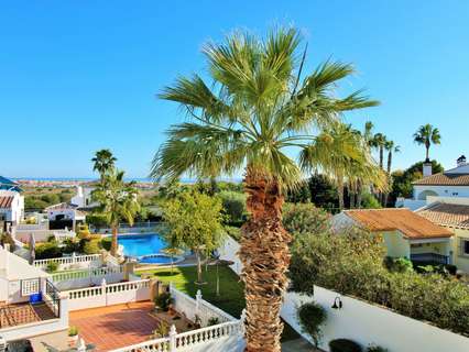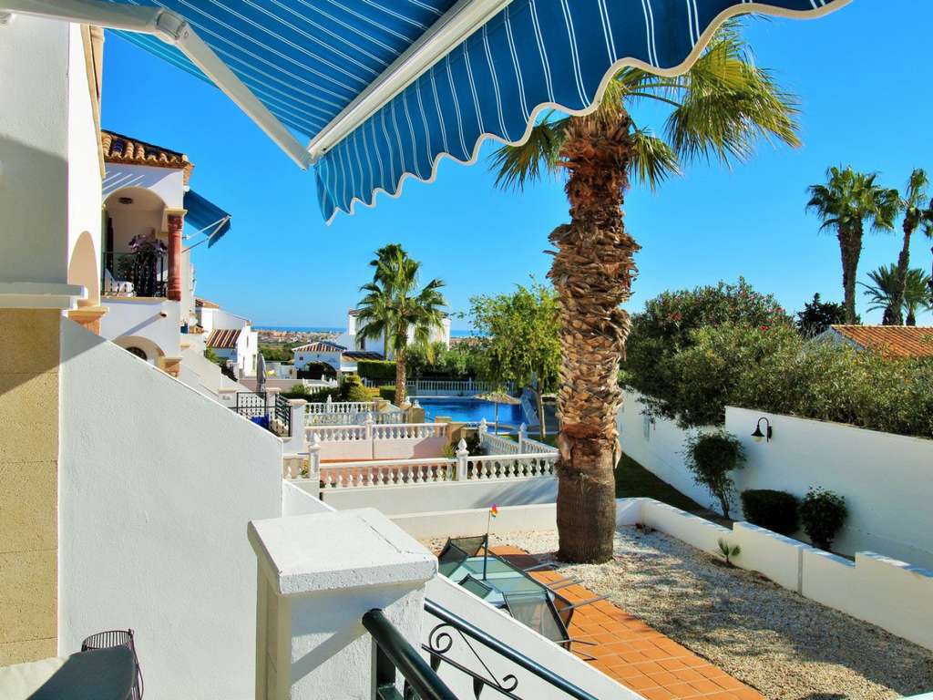 En ventaadosado modelo Sofía orientado al sur con vistas al mar y a la piscina, situado en la prestigiosa comunidad cerradade Las Violetas, Villamartin. La propiedad ha sido ampliamente renovada durante el último año con jardines alicatados, terrazas reformadas, cocina nueva, toldos retráctiles y mobiliario y electrodomésticos de alta calidad. Una magnífica oportunidad en una de las zonas más demandadas de Villamartin.