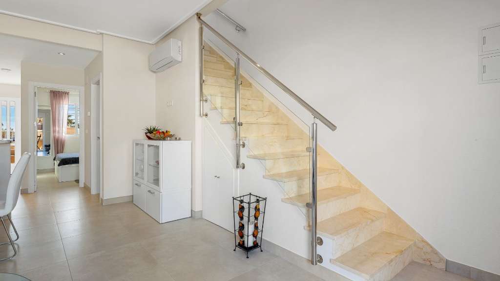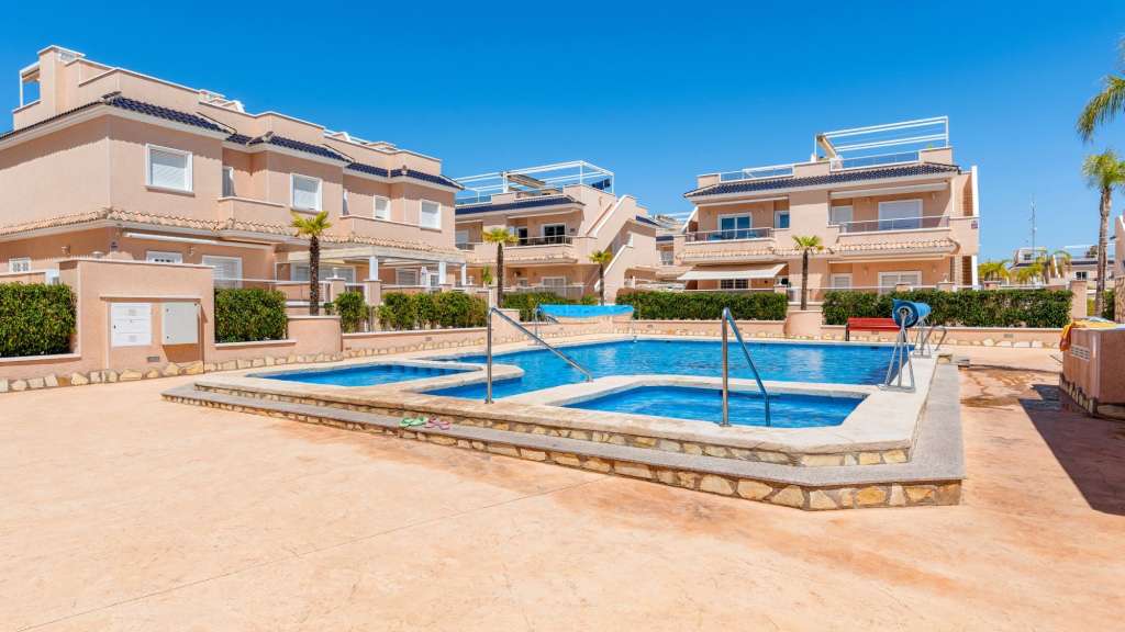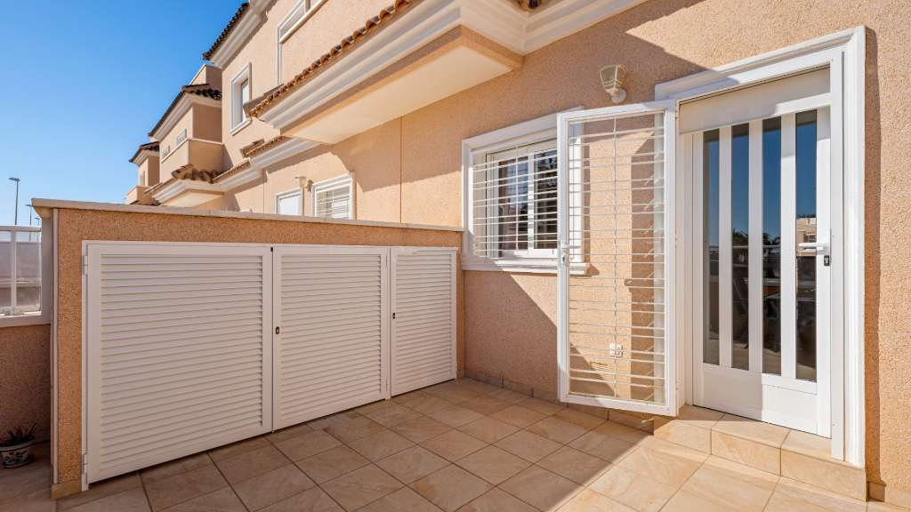 Se vende casa adosada con vistas al mar en Vista Azul, Lomas de Cabo Roig.La casa adosada se encuentra en Lomas de Cabo Roig. La propiedad cuenta con 3 dormitorios con armarios empotrados, 2 baños, amplio salón, cocina, terrazas con vista a la piscina, y solarium. Las vivienda tiene parking subterráneo.3 dormitorios 2 baños Balcón de 9m2Dos terrazas de 24,10m2 y otra de 24,60m2Solarium con vistas al marPreciosas zonas comunesDos piscinas Parking subterráneo privado
