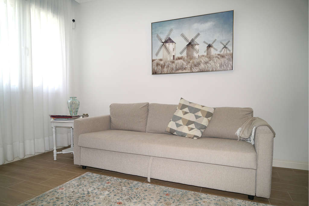 Se vende un adosado en la zona de La Zenia en la ciudad de Orihuela Costa. En la planta baja tiene una amplia sala de estar, unida a la cocina, y dos baños. En el segundo piso hay tres dormitorios, un baño y una terraza.La casa está completamente renovada, se ha cambiado la fontanería, se ha instalado una nueva cocina y parcialmente se ha instalado un nuevo mobiliario. En todos los baños y en la planta baja hay suelos radiantes, así como nuevas ventanas de doble acristalamiento de la marca Solar.El adosado se vende completamente amueblado y con los electrodomésticos necesarios.La propiedad está ubicada en una zona verde a 350 metros de la playa de La Zenia y a 950 metros del gran centro comercial La Zenia Boulevard.Toda la infraestructura necesaria está a poca distancia: farmacias, tiendas, supermercados, cafeterías y restaurantes.Al comprar una propiedad en España, es posible obtener la residencia en España. Nuestra empresa ayuda a tramitar cualquier tipo de visa de residencia.