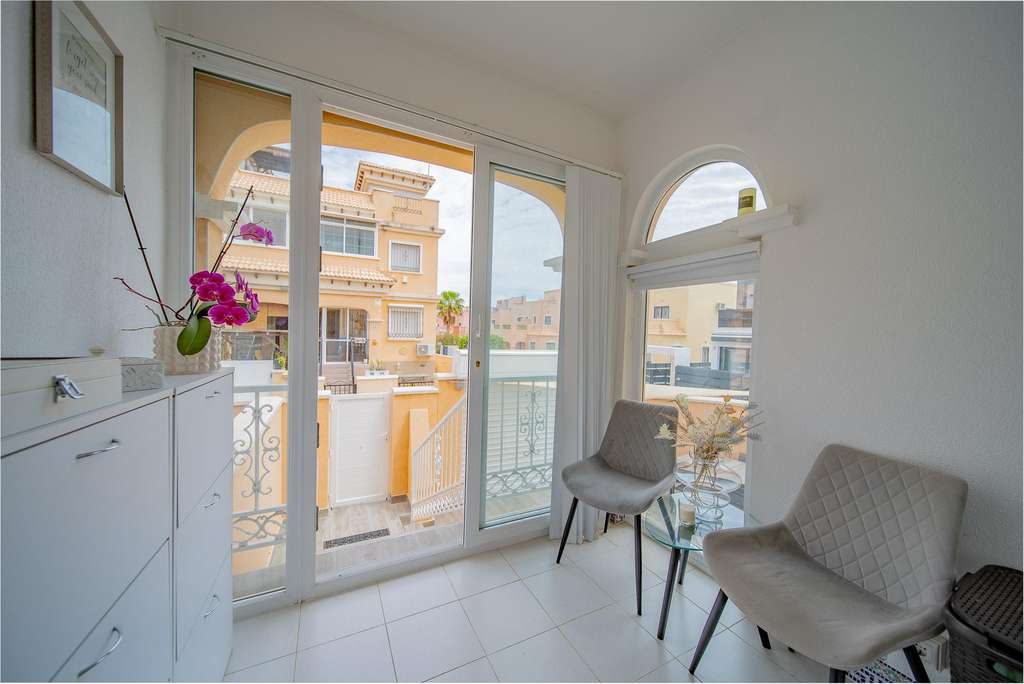Vivienda adosada completamente reformada en Pau 26, Orihuela Costa.Ubicado en una urbanización tranquila con piscina comunitaria, este adosado en esquina ha sido completamente renovado y ofrece excelentes espacios exteriores y buena privacidad.Construido en 2005 sobre una parcela de 81 m², cuenta con 76 m² construidos distribuidos en dos plantas.Características:3 dormitorios y 2 bañosCocina abiertaTerraza y solárium privadoTrastero o galeríaPlaza de parking en la parcelaParcialmente amuebladoOrientación noroestePiscina comunitariaGastos anuales:IBI: 295 €Comunidad: 275 €