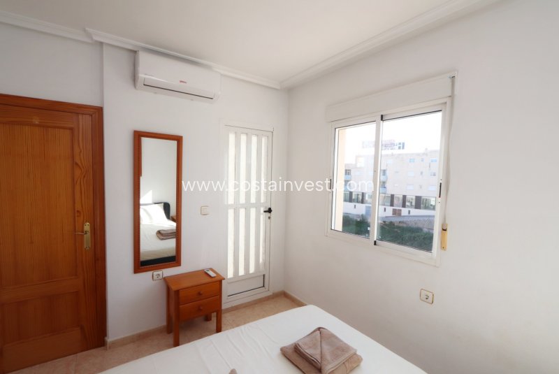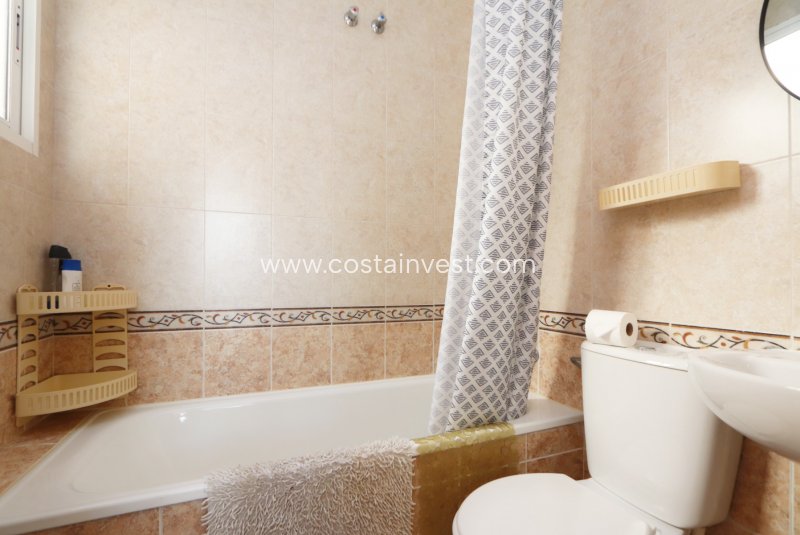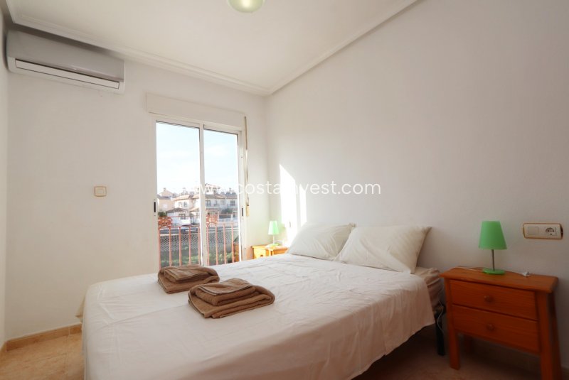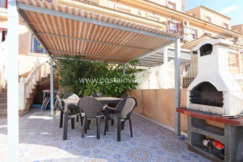 Casa adosada situada en Playa Flamenca, dentro de un residencial cerrado con piscina comunitaria. La vivienda cuenta con orientación suroeste, lo que garantiza una buena entrada de luz natural y sol durante gran parte del día. Se distribuye en varias plantas y dispone de 3 dormitorios, 2 baños completos y un aseo adicional, ofreciendo una distribución funcional y cómoda para una familia.