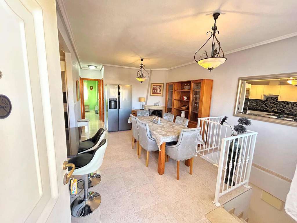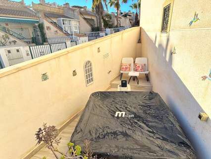 Casa adosada de esquina de 4 dormitorios, Villamartín, Orihuela Costa. Ubicada en la prestigiosa urbanización Monte Golf, con dos piscinas comunitarias, esta encantadora casa adosada combina comodidad, estilo y vida al aire libre. Jardín privado con zonas de guijarros, plantas, árboles maduros y un nuevo muro decorativo para mayor privacidad. Entrada con punto de carga para vehículos eléctricos, ideal para propietarios de vehículos eléctricos. Planta alta: 2 dormitorios luminosos, cocina totalmente reformada, un encantador comedor y un baño. Planta baja: Amplio salón, 2 dormitorios más (uno actualmente utilizado como oficina), otro baño y puertas que dan a una terraza con jacuzzi, ideal para relajarse. Excelente ubicación, a minutos del Centro Comercial La Fuente, Villamartín Plaza, campo de golf y a solo 15 minutos de playas como La Zenia, Cabo Roig y Campoamor. Totalmente amueblada y decorada con mucho gusto. Lista para entrar a vivir y disfrutar de todo lo que Orihuela Costa tiene para ofrecer.