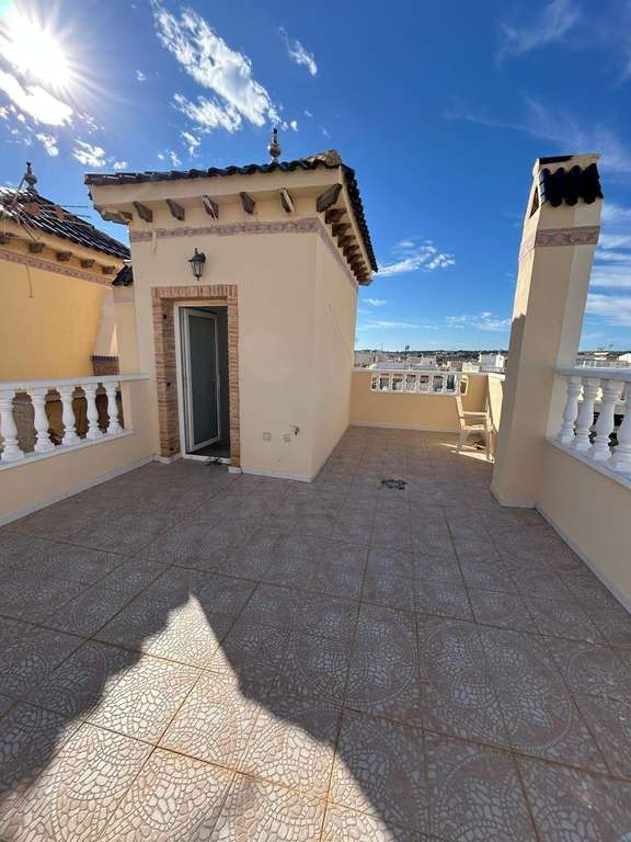 En la codiciada zona de Playa Flamenca, se presenta este atractivo adosado dúplex que fusiona comodidad y una ubicación inmejorable. La propiedad cuenta con dos acogedores dormitorios, un baño completo y un aseo adicional, distribuidos eficientemente para maximizar el espacio. Disfrute del aire libre en su jardín delantero de 25 m2 ideal para estacionar vehículos o relajar bajo el sol, así como en su jardín trasero de 24 m2 perfecto para reuniones familiares o momentos tranquilos al atardecer. Este hogar también ofrece una terraza descubierta junto a otras dos terrazas ideales para disfrutar del clima mediterráneo durante todo el año; además incluye un exclusivo solárium privado de 20 m2 donde podrá tomar baños solares disfrutando vistas despejadas. El complejo residencial está equipado con atractivas instalaciones como una refrescante piscina comunitaria perfecta para los calurosos días veraniegos mientras que las orientaciones Este y Suroeste garantizan luminosidad natural desde primera hora hasta bien entrada la tarde. Los gastos anuales son accesibles: IBI por tan solo €240/año e cuota mensual comunidad €370/año hacen más fácil mantener esta maravillosa vivienda cerca del mar Mediterráneo por sólo €179000 - ¡una oportunidad imperdible dentro de uno de los destinos más solicitados a lo largo dela Costa Blanca! Con todas las comodidades necesarias tantodiariascomo recreativas,y listapara ser habitadade inmediato.