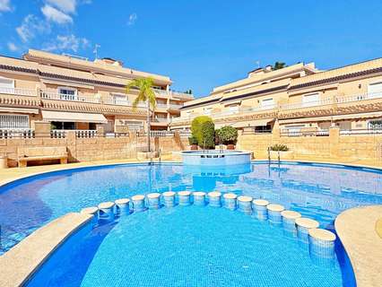 Precioso dúplex tipo quad en esquina situado en la reconocida urbanización Vista Azul, una de las más exclusivas de Villamartin, Orihuela Costa. Esta vivienda combina confort, estilo mediterráneo y una ubicación privilegiada, en un entorno tranquilo y familiar cerca de todos los servicios esenciales.Con 90 m² construidos sobre una parcela de 120 m², destaca por su orientación suroeste, que garantiza sol y luminosidad durante todo el año. En la planta baja se encuentra un amplio salón-comedor con acceso directo a la terraza, una cocina independiente totalmente equipada, un dormitorio ideal para invitados o despacho y un baño completo. En la planta superior se ubican dos dormitorios con armarios empotrados, un segundo baño y una escalera que conduce al solárium privado de 20 m², perfecto para disfrutar del sol, relajarse o contemplar las vistas despejadas.La vivienda está en excelente estado y equipada con aire acondicionado, toldos, puerta de seguridad y aparcamiento privado dentro de la parcela. La amplia terraza que rodea la casa ofrece zonas de comedor y relax al aire libre, ideales para aprovechar el clima mediterráneo durante todo el año.La urbanización Vista Azul ofrece magníficas zonas comunes con dos piscinas (una cubierta), jacuzzi, sauna y gimnasio, lo que la convierte en una de las comunidades más completas y valoradas de Villamartin.Ubicada junto al Campo de Golf Villamartin, cerca de los centros comerciales La Zenia Boulevard y Playa Flamenca, y a solo 3 km de las playas de Orihuela Costa, esta propiedad es ideal para quienes buscan comprar un dúplex en Villamartin o invertir en una vivienda en venta en la Costa Blanca.Una vivienda con encanto, lista para entrar a vivir, perfecta tanto como residencia habitual como para comprar como segunda vivienda o inversión inmobiliaria en Orihuela Costa.