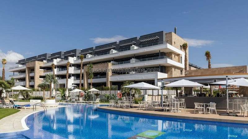 La ubicación del complejo es otro de sus grandes atractivos. La playa Flamenca está a solo unos minutos a pie, y el centro comercial La Zenia Boulevard se encuentra cerca, con numerosas tiendas, restaurantes y lugares de ocio. Para los amantes del golf, hay un reconocido campo de golf cercano, haciendo el complejo especialmente atractivo.