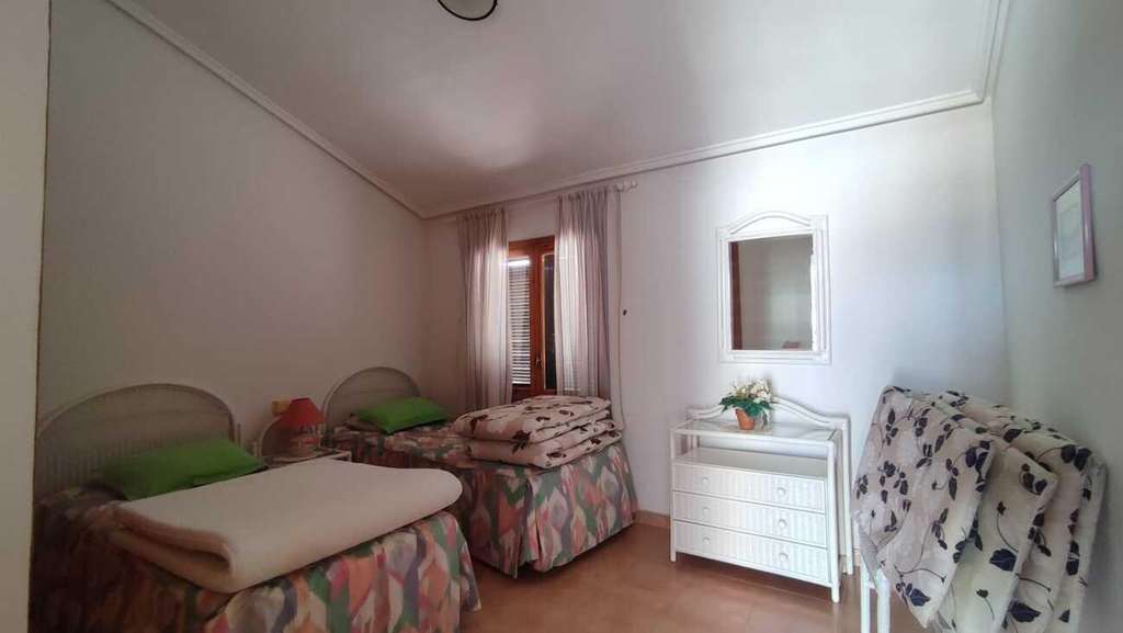 La casa adosada en sí se extiende sobre tres niveles cuidadosamente diseñados. La planta baja le da la bienvenida con una generosa sala de estar y una gran cocina totalmente equipada, así como un baño/baño con ducha en la planta baja.~~Subiendo a la segunda planta, encontrará dos cómodos dormitorios dobles, uno de los cuales cuenta con el lujo adicional de una terraza privada, un lugar ideal para tomar un café por la mañana o relajarse por la noche. La planta superior alberga el tercer dormitorio, que también cuenta con su propia terraza, lo que proporciona zonas exteriores adicionales para disfrutar del clima mediterráneo. Esta casa, de proporciones bien proporcionadas, combina espacios prácticos con zonas exteriores de primera calidad con acceso a una impresionante y cuidada piscina comunitaria, lo que la convierte en una excelente opción para quienes buscan comodidad y conveniencia en Punta Prima.~~El barrio continúa creciendo con emocionantes nuevos desarrollos recientemente terminados, incluyendo un nuevo complejo con galería comercial y una moderna bolera para actividades de ocio.~La impresionante costa española está a solo 15 minutos a pie.