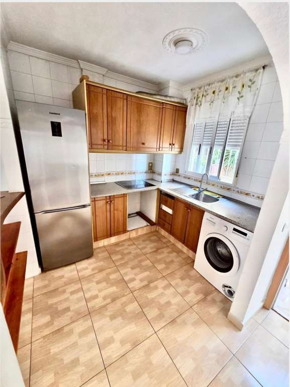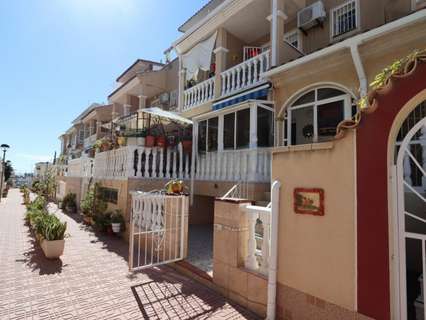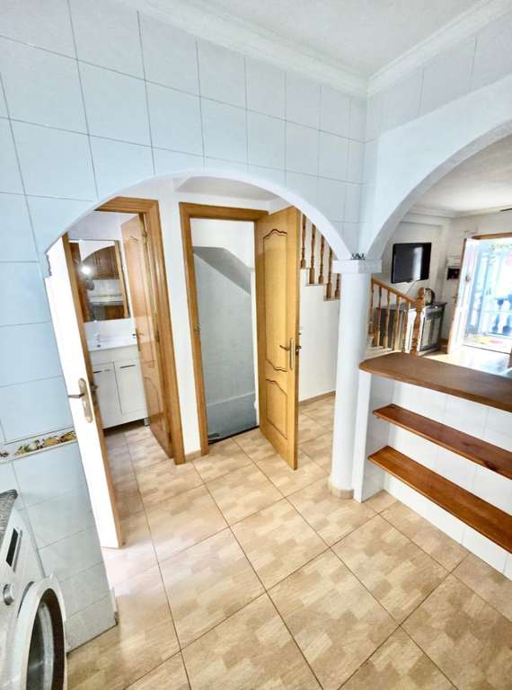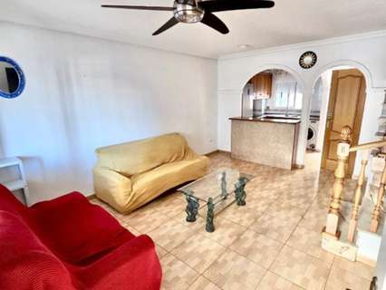 CASA ADOSADA EN VENTA EN ORIHUELA COSTA. Nos complace ofrecer a la venta esta casa adosada en la zona de Horazonte, Orihuela Costa. Cuenta con 3 dormitorios y 2 baños, distribuida en 3 plantas. En la planta principal, una terraza frontal da acceso al salón-comedor, la cocina totalmente equipada y un aseo. La segunda planta cuenta con 2 dormitorios, un baño familiar y una pequeña terraza. En la planta superior se encuentra el dormitorio principal con baño en suite y un amplio solárium. La planta sótano se utiliza como garaje/trastero, que podría convertirse fácilmente en un cuarto dormitorio. La propiedad también cuenta con piscina comunitaria y zona verde. La propiedad se entrega amueblada y cuenta con aire acondicionado. Ofrece 76 m² construidos y 105 m² de superficie total, distribuidos cómodamente en 3 plantas, ofreciendo amplios y luminosos espacios de estar. Distribución y características principales: Porche cubierto, ideal para disfrutar todo el año. Amplio y luminoso salón-comedor. Cocina totalmente equipada con barra americana. 3 dormitorios. 1 baño completo con ducha a ras de suelo. 1 baño completo con bañera. 1 aseo de invitados. Terraza privada. Aire acondicionado. Piscina comunitaria. Plaza de aparcamiento. Garaje subterráneo privado con espacio para 2 coches. Ubicación privilegiada: A 1 minuto de zonas de ocio y servicios. A 2,5 km de la playa de Punta Prima. A 6 km del campo de golf Las Ramblas. A 65 km del aeropuerto de Alicante. Excelente oportunidad en Orihuela Costa, ideal tanto como residencia permanente como inversión en la Costa Blanca. Una propiedad con todas las comodidades, excelentes conexiones y lista para disfrutar del estilo de vida mediterráneo. Contáctenos hoy mismo para una visita.