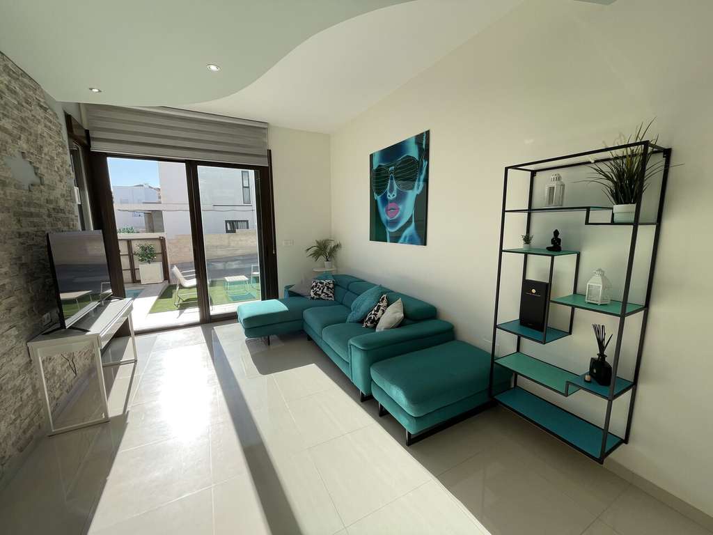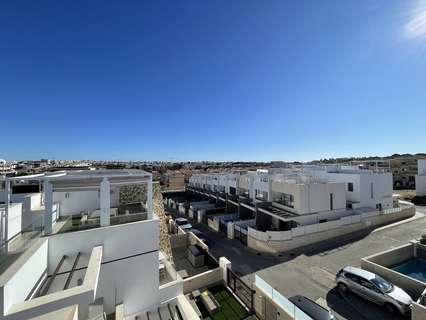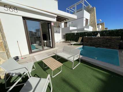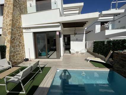 Casa adosada bien cuidada y elegante en la encantadora urbanización Entre Golf, una de las más apreciadas y tranquilas de Villamartín.Situada en la tranquila y privada calle Bidasoa, a poca distancia de restaurantes, cafeterías y supermercados, y a un corto trayecto en coche de la popular Villamartín Plaza y La Fuente. También se encuentra a poca distancia en coche de varios campos de golf, incluido el de Villamartín.Luminosa y espaciosaEl luminoso y grande salón conecta a la perfección con la cocina abierta y la soleada terraza orientada al sur. También hay un aseo separado, ideal para los invitados.Dispone de su propia piscina privada con bomba de calor, jardín de bajo mantenimiento y posibilidad de aparcar en la parcela.Varios vecinos han optado por convertir el comedor en un dormitorio adicional, por lo que las posibilidades son muchas.En la planta superior hay dos amplios dormitorios dobles, ambos con armarios empotrados y balcón privado, ideales para empezar la mañana con una taza de café. El luminoso cuarto de baño, totalmente alicatado, está equipado con una amplia ducha.En el solárium le espera una maravillosa terraza en la azotea con impresionantes vistas de la zona.Listo para entrar a vivir y amueblado.El apartamento se vende amueblado con elegantes muebles de interior, accesorios y prácticos artículos para el hogar: solo tiene que traer su maleta y empezar a vivir.Ubicación privilegiada en Villamartín - Los Altos.Los Altos es conocido por su ambiente tranquilo, sus excelentes servicios y su proximidad a playas, tiendas y restaurantes. Una combinación perfecta de espacio, comodidad y encanto mediterráneo.Además de su propia piscina privada, también tiene acceso a la zona de piscina comunitaria de la urbanización, situada a pocos metros, al final de la calle. Está muy bien cuidada, con césped natural, sombrillas y pista de petanca.Se trata de una propiedad que resulta atractiva tanto para residentes permanentes como para turistas, y se vende en exclusiva a través de nuestra agencia. ¡Póngase en contacto con nosotros hoy mismo para concertar una visita a esta joya en una ubicación privilegiada!