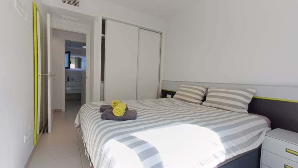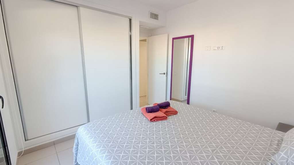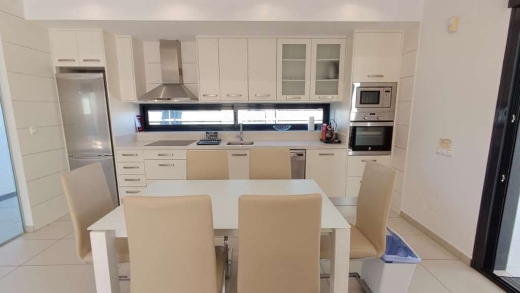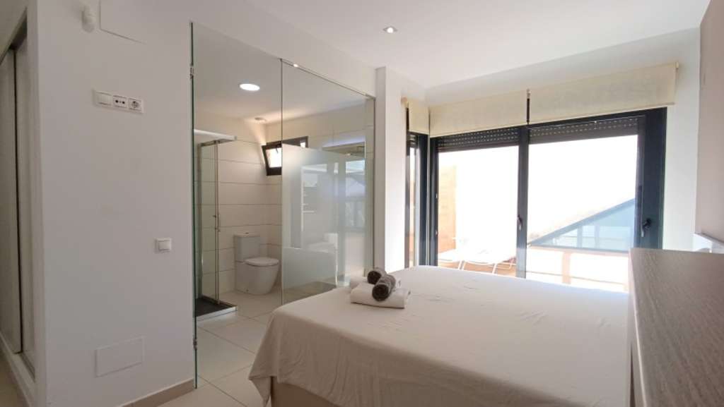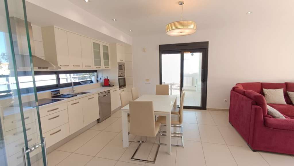 La cocina está completamente equipada con electrodomésticos modernos como frigorífico, horno, lavadora, microondas, vitrocerámica y extractor de humo, además de contar con muebles de cocina de alta calidad. La propiedad también ofrece armarios empotrados y baño en habitación, añadiendo un toque adicional de lujo.