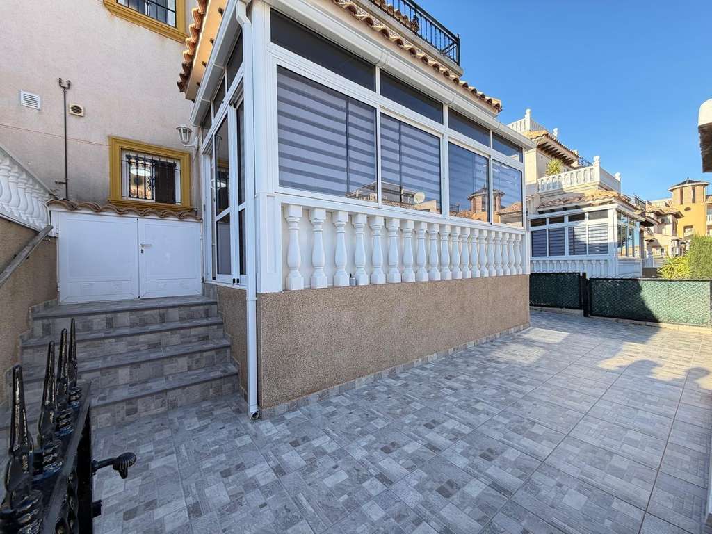Se vende acogedor adosado en Orihuela Costa, zona Las Filipinas, ubicado en una urbanización tranquila y bien cuidada con piscina y zonas verdes.~~La vivienda está en muy buen estado tras una reforma estética, lista para entrar a vivir.~~???? Características principales:~• Superficie total: 82 m2~• Superficie útil: 74 m2~• Parcela: 67 m2~• Solárium + terraza: 20 m2~• Distribución: 2 dormitorios y 2 baños~• Distancia a la playa: 6 km~~Desde la terraza y el solárium se disfrutan magníficas vistas abiertas a las montañas y al mar.~~❄️ Equipamiento y ventajas:~• Aire acondicionado en todas las estancias~• Amplia terraza acristalada en la entrada, perfecta para desayunar o disfrutar del clima~• Aparcamiento dentro de la parcela~• Amplio trastero~~La vivienda se vende amueblada y equipada con electrodomésticos, tal como aparece en las fotografías.~~???? Urbanización:~• Piscina comunitaria~• Zonas ajardinadas~• Entorno tranquilo y agradable~~Una excelente oportunidad para vivir todo el año, disfrutar de vacaciones o invertir en una zona muy demandada de Orihuela Costa.