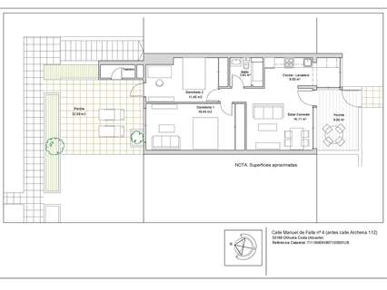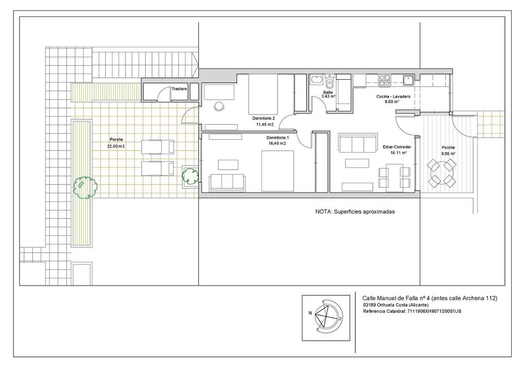 Descubre una vivienda donde la amplitud y el diseño moderno se encuentran en cada rincón. Este bungalow cuenta con dos grandes dormitorios, equipados con armarios empotrados de máxima capacidad, y un baño contemporáneo que incluye plato de ducha. La cocina a estrenar está totalmente equipada y conecta perfectamente con un acogedor porche frontal y una amplia terraza trasera ideal para tus momentos de relax o cenas al aire libre. Los interiores destacan por sus suelos laminados cálidos imitación madera natural, instalaciones completamente nuevas (fontanería y electricidad) además del práctico trastero exterior incluido.~~En cuanto a los exteriores, disfrutarás de un espacio privado equipado con toldo perfecto para leer o tomar café al aire libre; mientras que la gran terraza posterior ofrece versatilidad total para eventos sociales bajo las estrellas rodeado por exuberantes jardines comunitarios meticulosamente cuidados durante todo el año – brindando paz absoluta e intimidad constante.~~Ubicado estratégicamente: A solo minutos caminando encontrarás CC La Rioja (restaurantes), farmacia e incluso supermercados como Dialprix; sin olvidar estar justo frente a prestigiosos campos de golf! En coche llegarás rápidamente a Zenia Boulevard -el centro comercial más grande- así como Vilamartín Plaza lleno servicios médicos extraordinarios junto opciones gastronómicas variadas entre otras maravillas locales dentro del Paraíso Costero - accediendo velozmente hacia playas galardonadas tales como La Zenia o Cabo Roig.