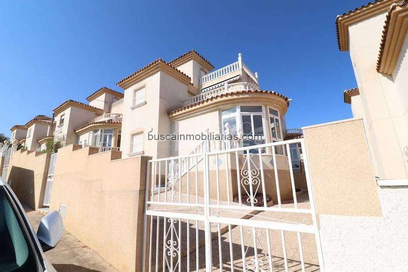 Blue Lagoon, Chalet independiente orientación sur con una parcela con entrada para el coche de 160 m2 y un jardin de 81 m2, la vivienda tiene una superficie construida de 114 m2 en dos plantas más solarium desde el cual tienes vistas al mar, la vivienda dispone de 3 dormitorios (1 en planta baja), 2 baños, cocina independiente y salón comedor también cuenta con 2 terrazas una de ellas acristalada, la vivienda se vende semi-amueblada y cuenta con una piscina comunitaria.~