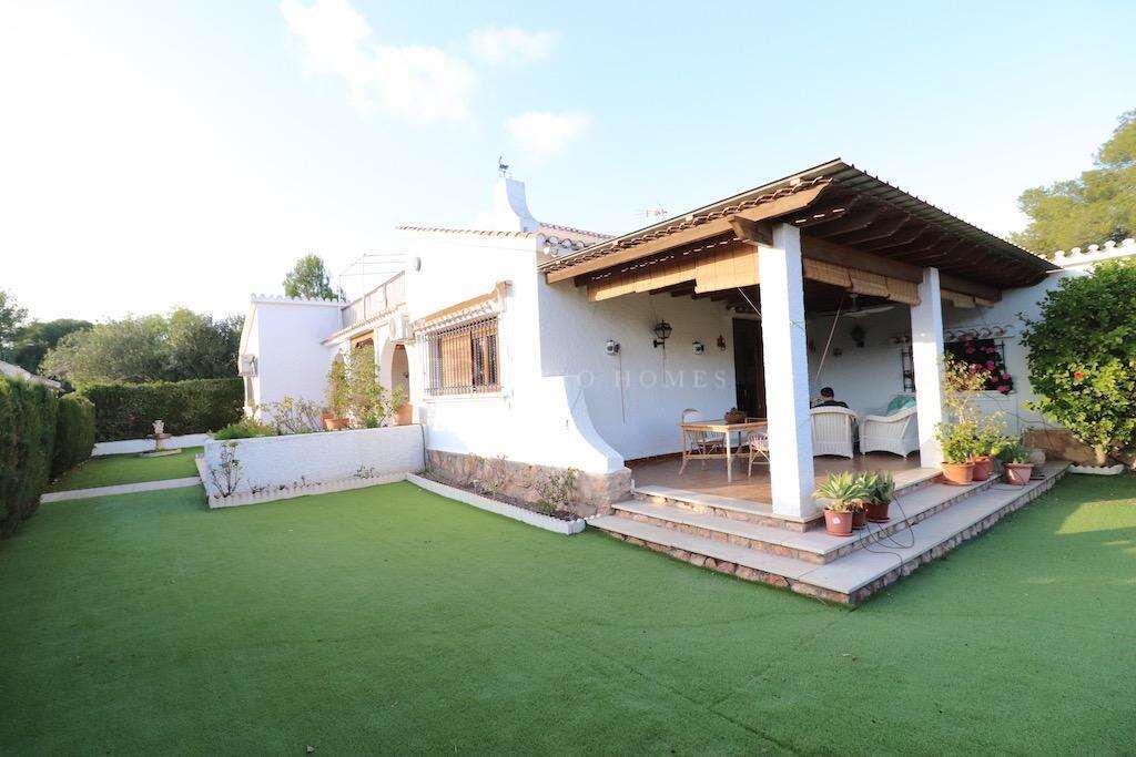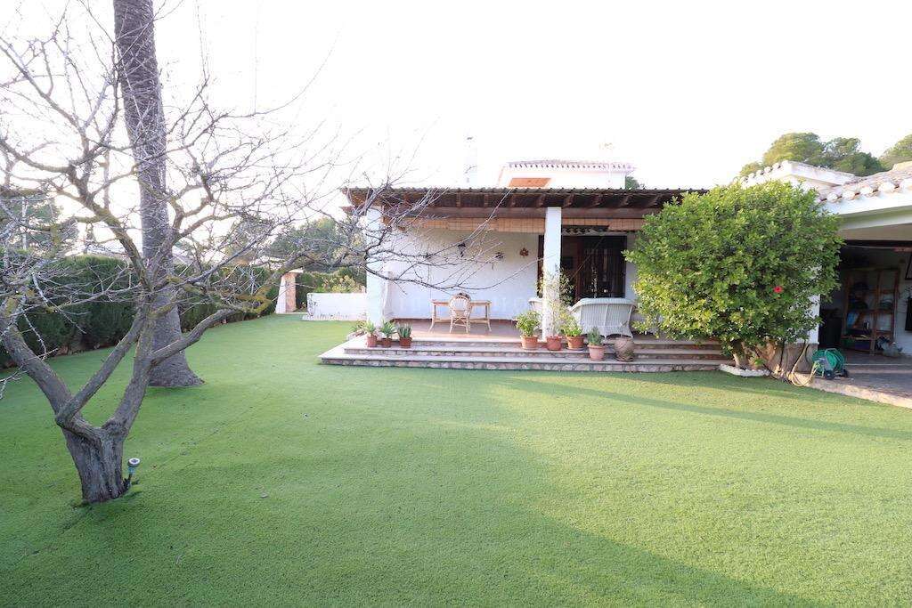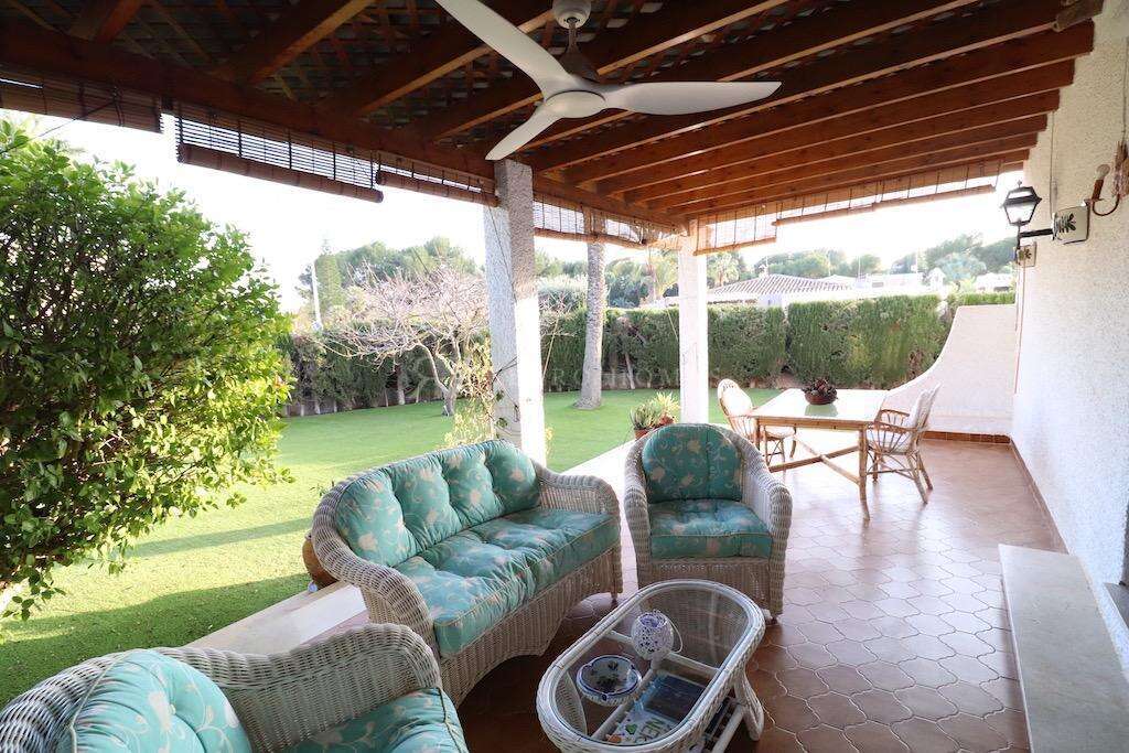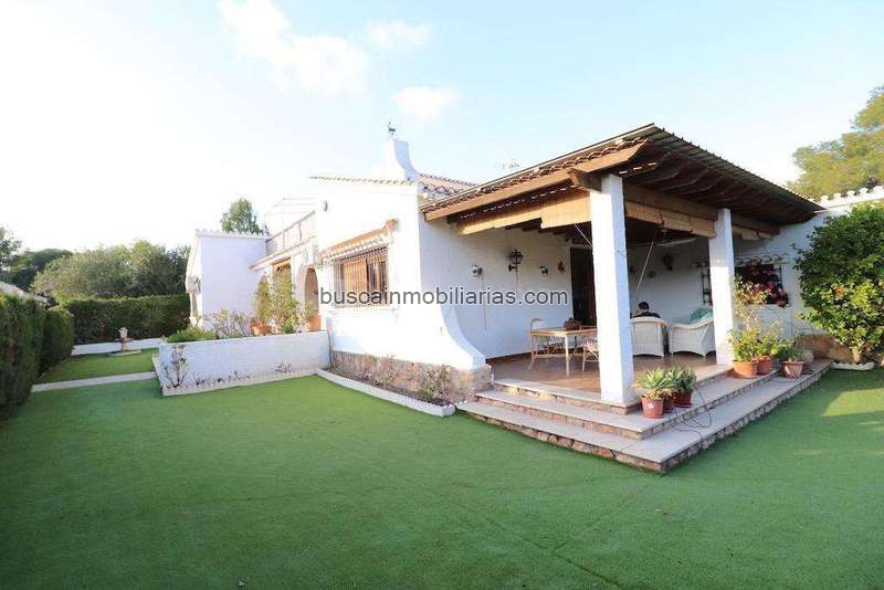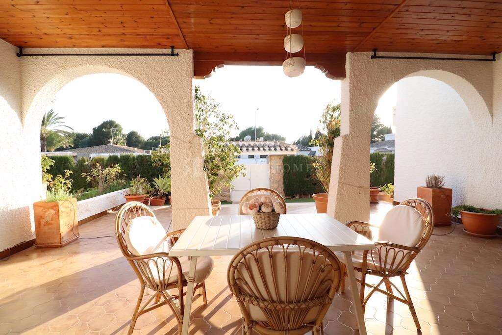 Dehesa de Campoamor chalet en esquina a dos calles y orientación sur con una parcela de 750 m2 y una vivienda en 2 alturas de 300 m2 vivienda con 5 dormitorios, 2 baños, cocina independiente con galería, gran salón comedor con chimenea, 2 terrazas, solarium con unos 40 m2, dispone de un garaje cerrado, trastero, la vivienda se vende amueblada, acceso al polideportivo con piscina comunitaria, paddel, tenis y a tan solo 600 mts de la playa.~