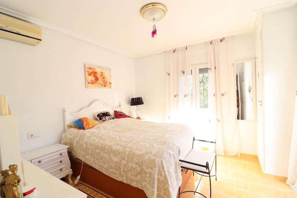 La Zenia a tan solo 300 mts de la playa y orientación Sur, Chalet independiente en una sola planta y solarium de unos 50 m2 con pergola y zona de barbacoa dispone de una parcela de 600 m2, la vivienda tiene 82 m2 y cuenta con 2 dormitorios, baño, cocina americana, gran salón comedor con chimenea y una gran terraza en forma de L, piscina preciosa privada, la vivienda se vende amueblada y con aire acondicionado y trastero.~~