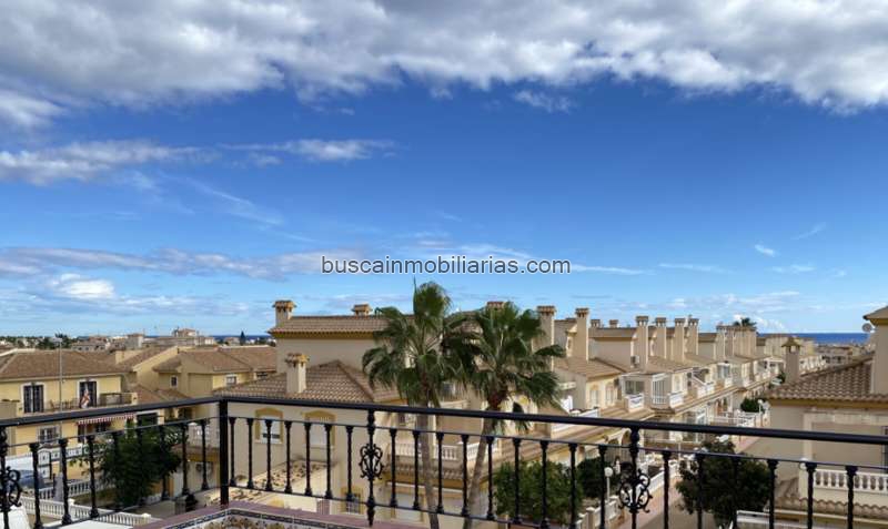 Una vivienda unifamiliar en esquina con su plaza de parking privado, su terraza para disfrutar de las tardes en la sombra, la vivienda está orientada Nordeste, con 3 dormitorios, baño y aseo completo en la primera. Al abrir la puerta de la vivienda se encuentra con su salón de unos 15 m2 y su cocina de unos 9 m2, un dormitorio en la planta baja y su aseo completa la primera planta, subimos las escaleras nos encontramos en un recibidor que nos dirige de frente a una habitación con dos camas de 90 cm y su mesita de noche con orientación Este, saliendo giramos a la derecha nos encontramos con una habitación con un armario de pared a pared y su balcón que le permite sentarse para disfrutar, terminamos con un baño completo con ducha. Seguimos la visita subiendo al solárium con sus magníficas vistas al mar y al centro comercial Zenia Boulevard.[IW]