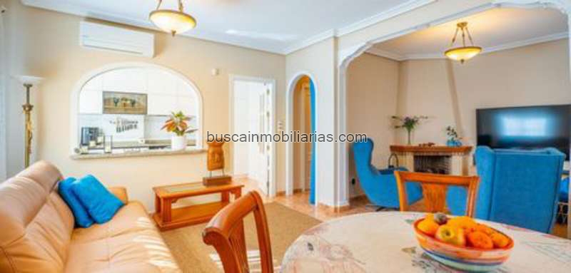 Os invitamos a visitar esta encantadora Casa dúplex en el Residencial Vista Azul, en Orihuela Costa, una de las zonas más demandadas de la Costa Blanca. Ubicada en un entorno residencial muy valorado, permite disfrutar del clima mediterráneo con tranquilidad y un estilo de vida activo y saludable.~~La vivienda ofrece una distribución cómoda en dos plantas más solárium. Cuenta con un amplio y luminoso salón amueblado con chimenea, cocina moderna de concepto abierto totalmente equipada, 2 dormitorios y 2 baños completos. Dispone además de una luminosa terraza con zona de descanso y un jardín cuidado con espacio de descanso y aparcamiento dentro de la parcela. Incluye trastero privado. Una cosa por destacar de esta villa son sus Placas Solares. ~Todo incluido en el precio!!!!~~Se encuentra en Residencial Vista Azul y dispone de piscina comunitaria y zonas ajardinadas. Se encuentra a aproximadamente 1km del mar y a 1700m del Centro Comercial La Zenia Boulevard, con todos los servicios esenciales cercanos: supermercados, restaurantes, tiendas y farmacias.~Una ubicación ideal por su tranquilidad, buenas playas y excelente clima, perfecta tanto como residencia habitual como inversión.~~~El precio del inmueble no incluye los gastos de notaría, registro ni los impuestos aplicables, que varían según el precio de la propiedad y la normativa vigente en la Comunidad Valenciana.